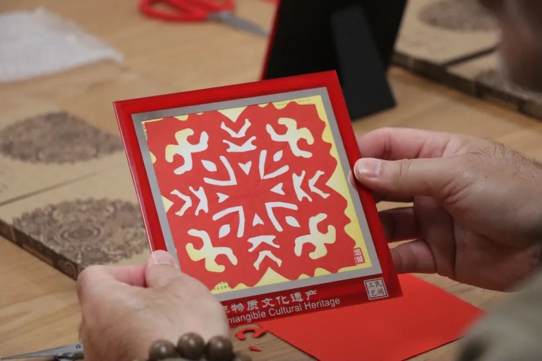 途中,交流团体验中国非遗剪纸艺术。西安藤信学校非遗传承人现场执教示范,来宾们亲手创作剪纸作品,众人合影定格美好瞬间,这份饱含中国韵味的非遗手作,也被来宾们精心珍藏、携归留念。