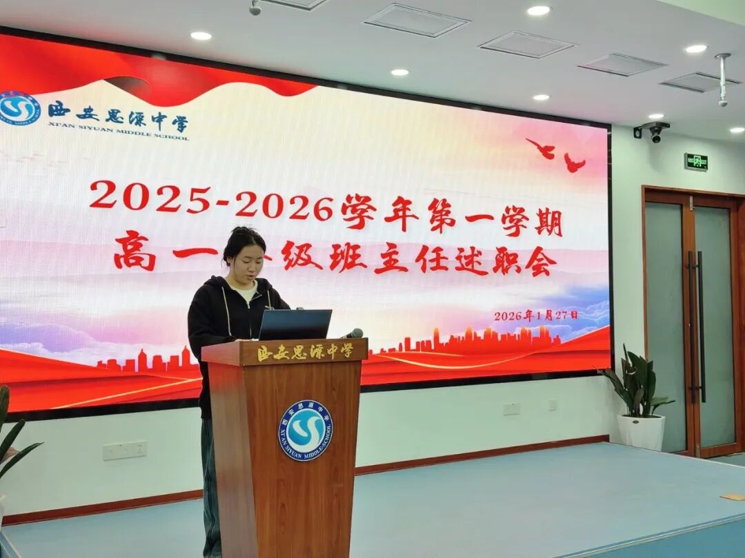 为全面总结高一年级第一学期的德育与班级管理工作,交流经验、反思不足、凝聚共识,1月27日下午,高一年级召开了班主任学期末述职总结会议。会议由高一年级组精心组织,全体14位班主任依次登台,对本学期工作进行了全面梳理与深度汇报。高建伟校长助理出席会议并作指导讲话。