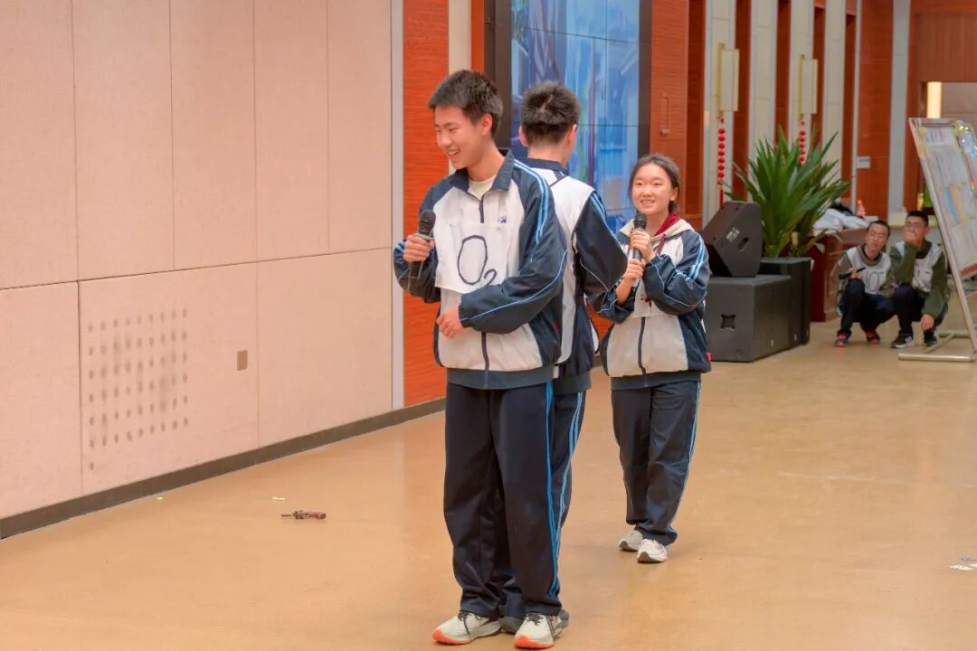 开场表演中,同学们用变幻的光影让抽象的数学曲线“动”起来,氛围感瞬间拉满。知识竞答环节精彩纷呈,选手们思维敏捷,展现扎实功底;穿插其间的观众竞猜更是点燃全场热情,台下呼声阵阵,人人争相参与。整场活动气氛热烈,原本抽象的数学知识原来可以这么生动有趣,同学们沉浸式感受到数学的独特魅力。