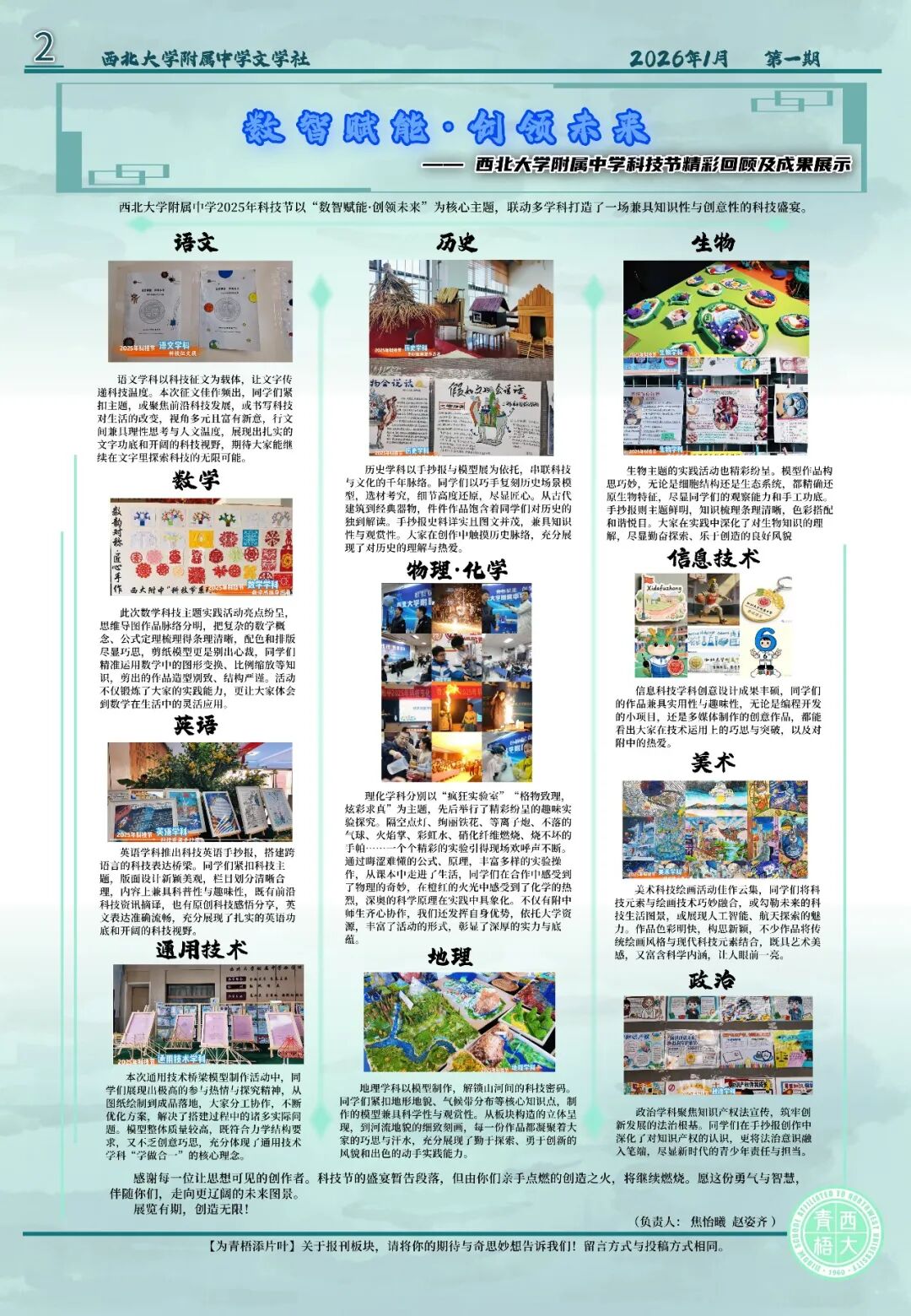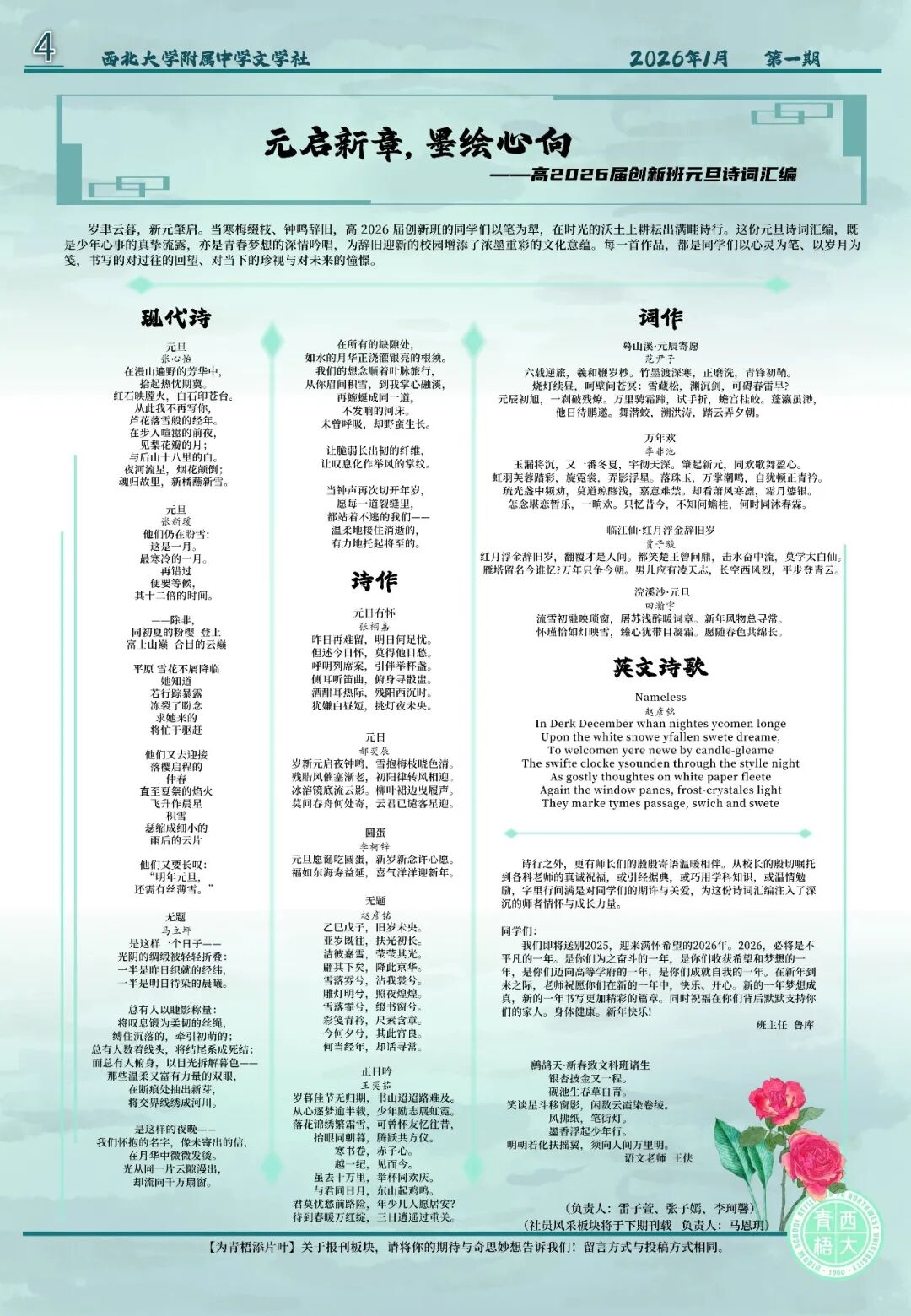 「青梧」,意为“我们的青春之树”,愿为所有热爱文字的灵魂提供栖息之地。作为面向全校文学爱好者成立的校园文化社团,青梧文学社既深耕经典,也激扬创作。社刊《青梧》,是展示学子才华的殿堂、探索文学知识的窗口,也是记录校园动态的全景画。