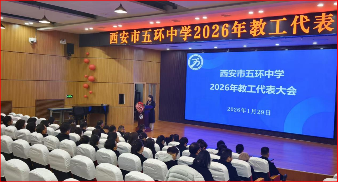 元月29日上午,西安市五环中学2026年教职工代表大会在庄严而热烈的气氛中顺利召开。本次大会以促进学校民主管理、凝聚发展共识为主线,聚焦教职工关切,共商发展大计,为学校新一年的工作擘画蓝图、凝聚力量。
