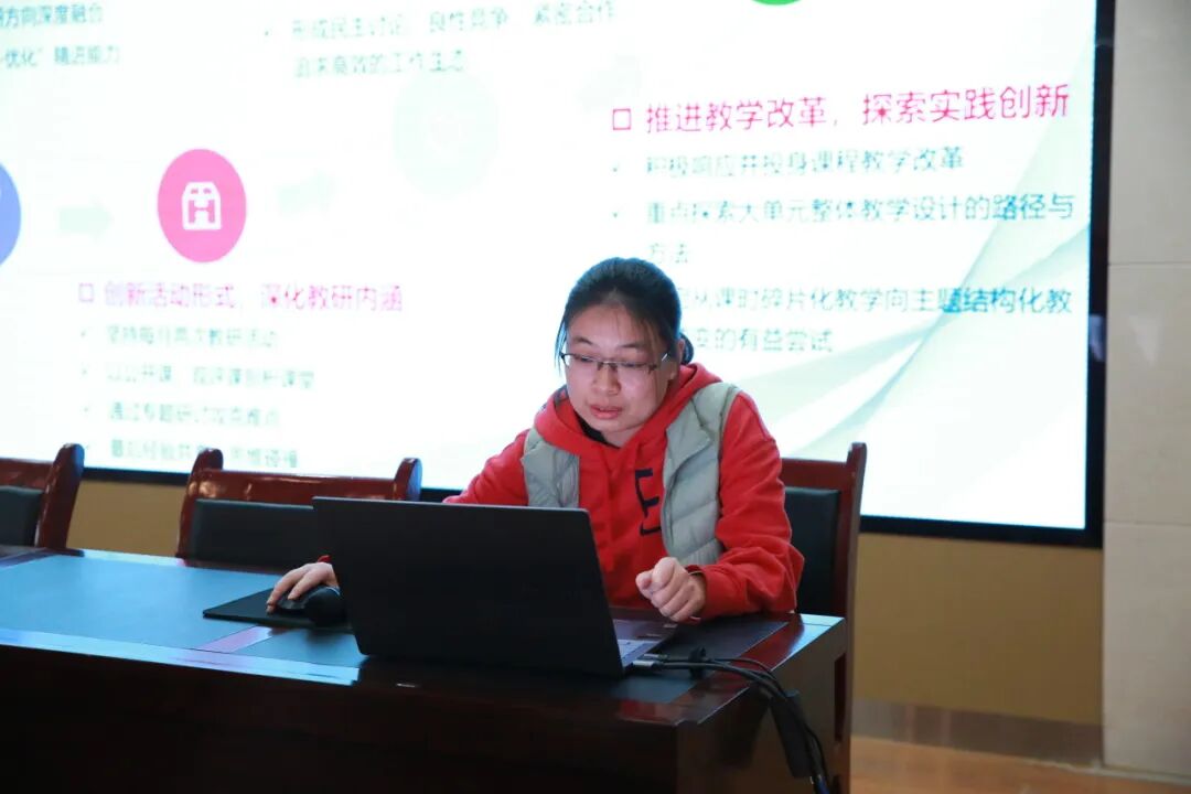 会议伊始,教务处副主任王一涵发言指出:“教研工作在提升学科教学质量、促进教师专业发展等方面扮演着至关重要的角色。今天,我们齐聚一堂,通过现场述职,共同聆听各位教研员在过去一段时间的工作汇报,分享宝贵经验、交流深刻思想,为进一步推动教育教学工作的高质量发展汇聚智慧与力量。”