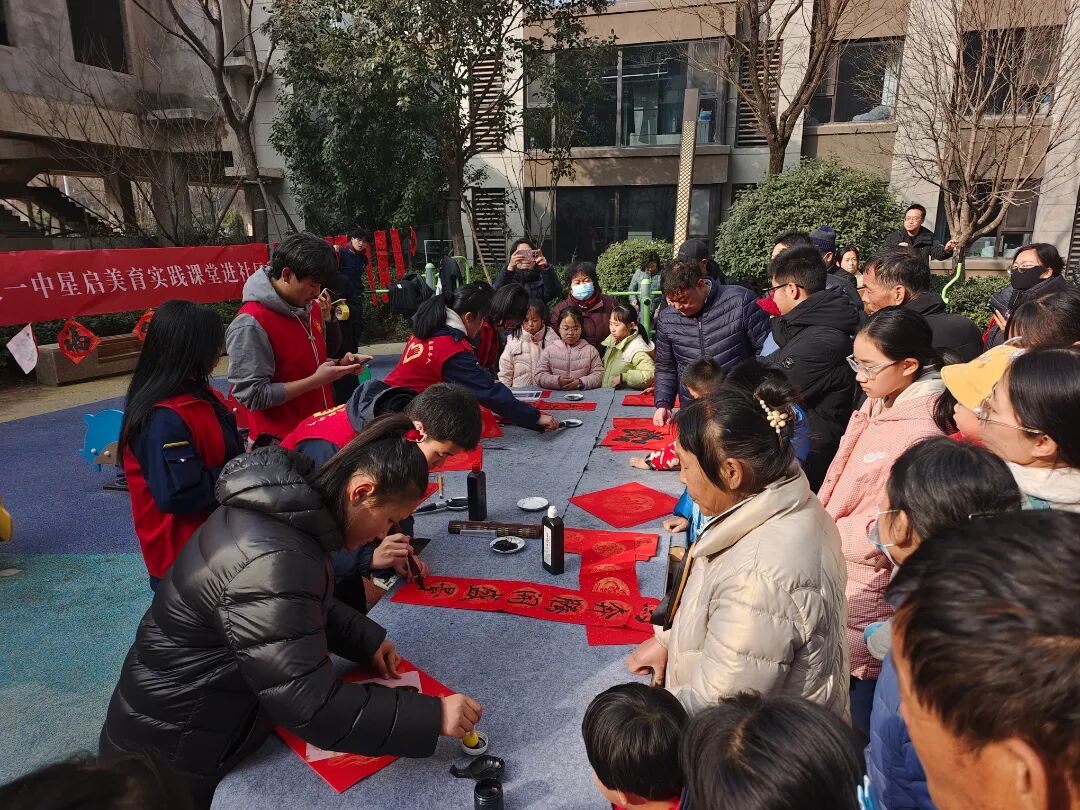 骏马启新程,美育润民心。马年新春将至,近日,航天一中师生走进社区开展“艺暖邻里——航天一中星启美育实践课堂进社区”主题活动,以墨传情,以艺暖心,共同传递新春祝福。