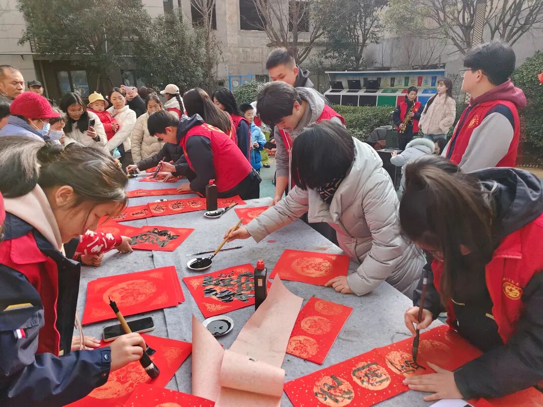 活动现场年味浓厚,师生们热情投入。春联书写区,同学们挥毫泼墨,“骏马奔腾开胜景,春风浩荡展宏图”等饱含马年寓意的春联跃然纸上,寄托美好期许;老师们悉心指导居民书写,让大家在体验中感受传统文化魅力。