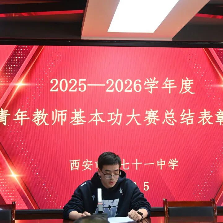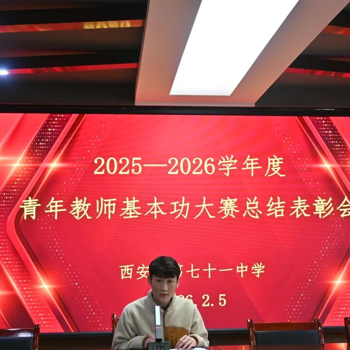 春寒不减研讨热,书香更添反思深。2026年2月5日下午,西安市第七十一中学一楼阅览室气氛热烈,2025—2026学年度青年教师基本功大赛总结表彰反思会在此隆重召开。这是一场思想的盛宴,一次智慧的碰撞,更是一次教育初心的集体叩问。学校行政领导、评委专家与青年教师济济一堂,共同探寻教学反思的真谛,汇聚专业成长的力量。