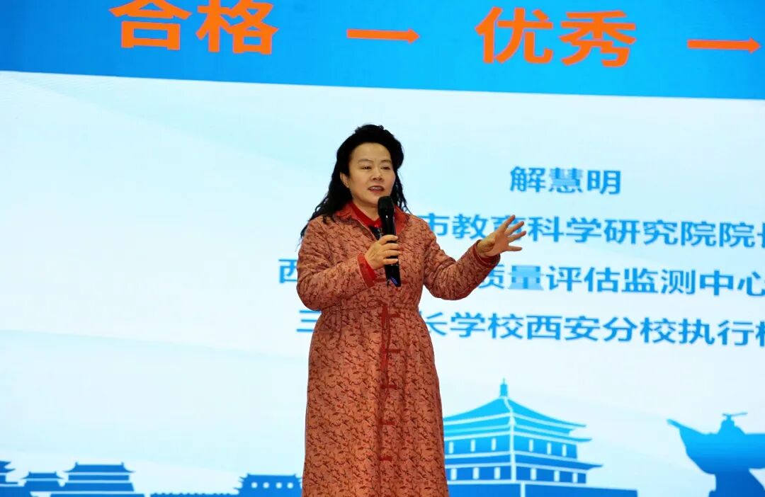 西安市教育科学研究院院长、西安市教育质量评估监测中心主任、三秦家长学校西安分校校长解慧明作题为《好孩子是影响出来的》家庭教育主题的微报告分享。她指出,本次活动的举办旨在深入推进全市家校社协同育人机制建设,共同探讨高中阶段育人模式的创新与实践,从而为区域教育高质量发展注入新的活力与动力。同时,她强调环境、榜样、关系和文化在孩子成长过程中的重要作用。家庭环境是孩子最初的世界观来源,榜样是直观的教育方式,关系是温暖的成长土壤,文化则是深层的成长底色。孩子是天生的观察家和模仿者,充满尊重与书香的家庭,能让孩子养成温和待人和热爱阅读的习惯。一个充满尊重与对话的家庭,一所注重品格与探索的学校,会在无形中塑造孩子的内心世界。教育的本质是用生命影响生命、用品格塑造品格,希望家长和老师应该成为孩子成长路上的“光”。
