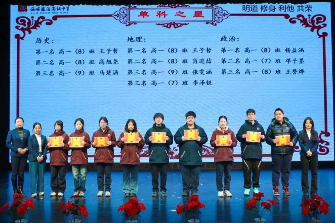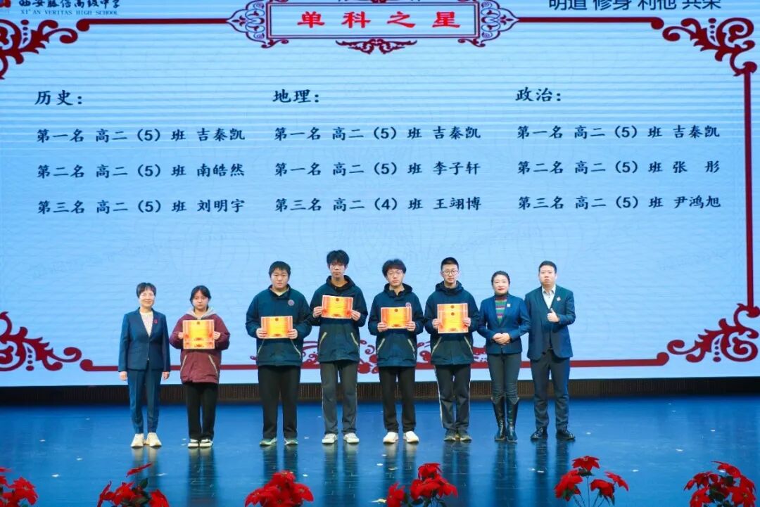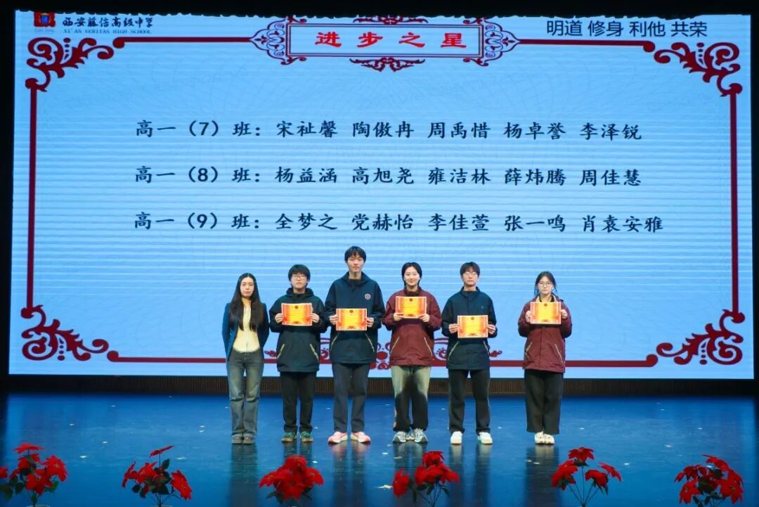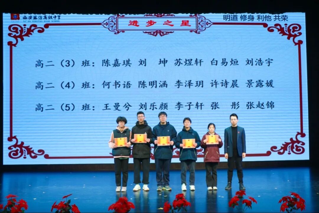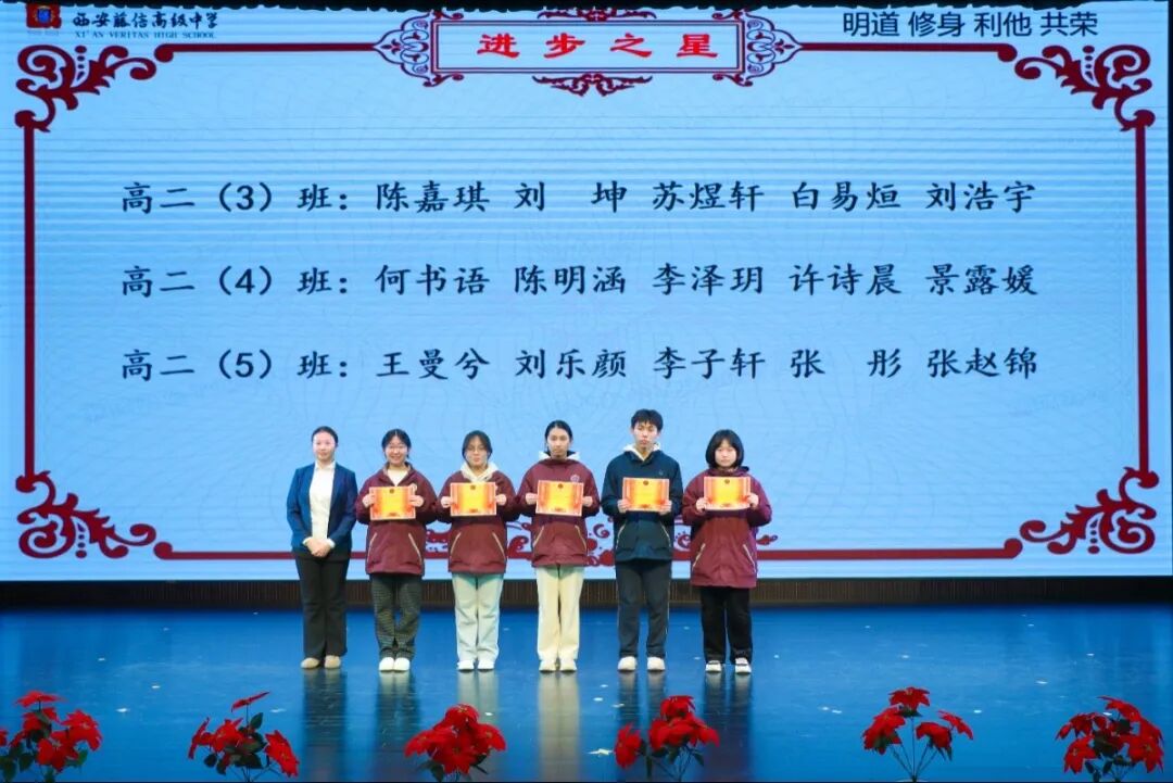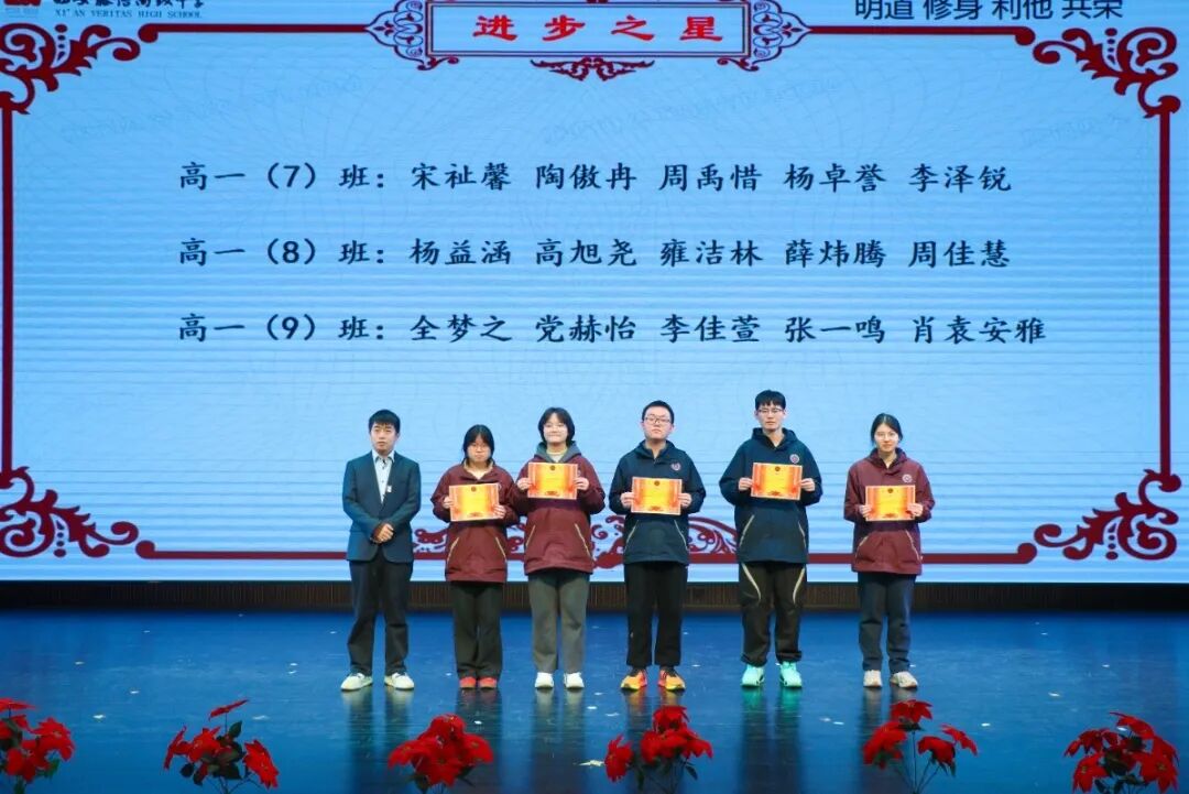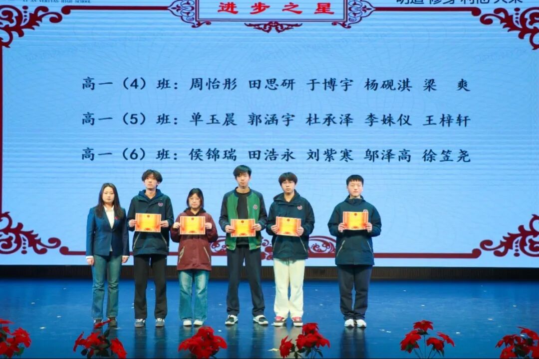活动伊始,与会领导、老师依次为在期末考试斩获佳绩、日常学习生活表现突出,以及各班级的进步学生颁发荣誉奖项,表彰其奋进之姿、肯定其学习中的亮眼表现,充分彰显榜样的引领力量。