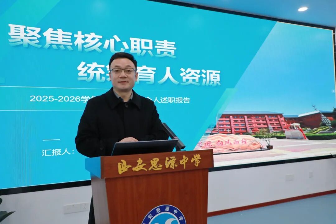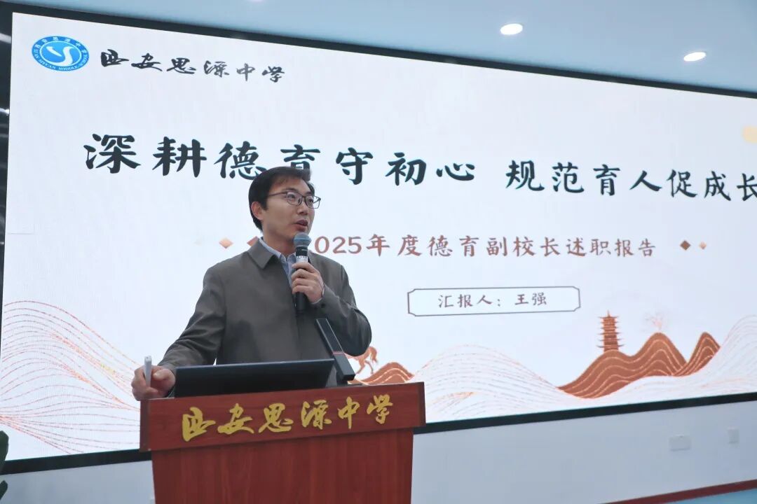 为持续提升学校管理精细化水平,锤炼高素质管理队伍,强化各部门履职担当,以清晰思路、务实举措推动学校教育教学工作提质增效、再上新台阶,2月8日上午,西安思源中学2025年度述职汇报顺利举行。校长王琪、教学副校长孙化利、德育副校长王强、校长助理高建伟及全体教职工出席会议。