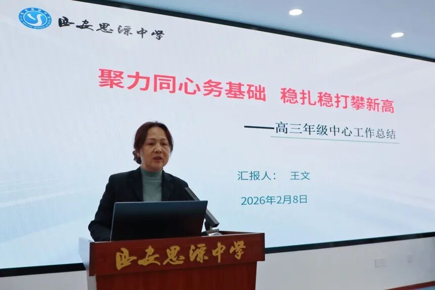 随后,校长王琪作总结讲话。她首先对年级主任、学科中心主任、及全体行政领导的工作汇报给予充分肯定,对全体教职工一阶段以来的辛勤耕耘、默默坚守表示衷心感谢。她强调,新的阶段任务更重、标准更高,希望全体教职工继续凝心聚力、务实笃行,以更高站位、更实举措、更优作风,深耕课堂、潜心育人、服务大局,共同推动学校各项工作再上新台阶、再获新突破,用实干与担当书写学校高质量发展的新篇章。