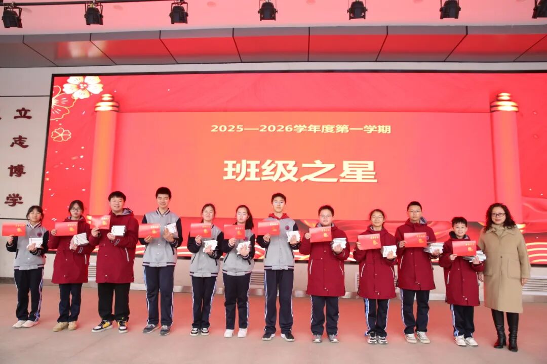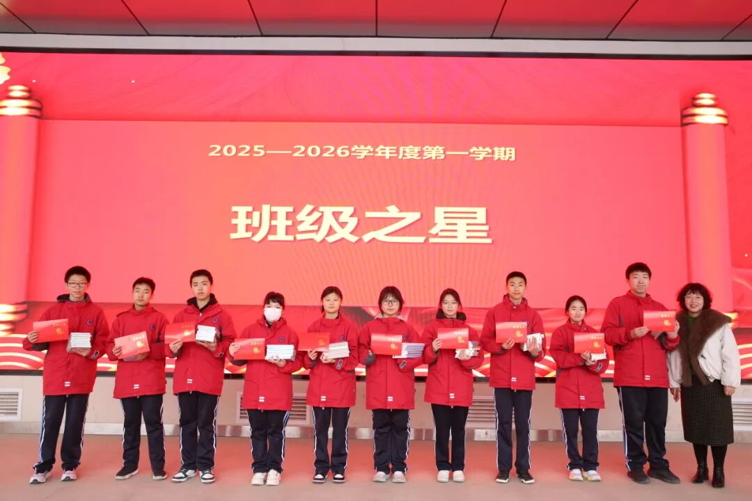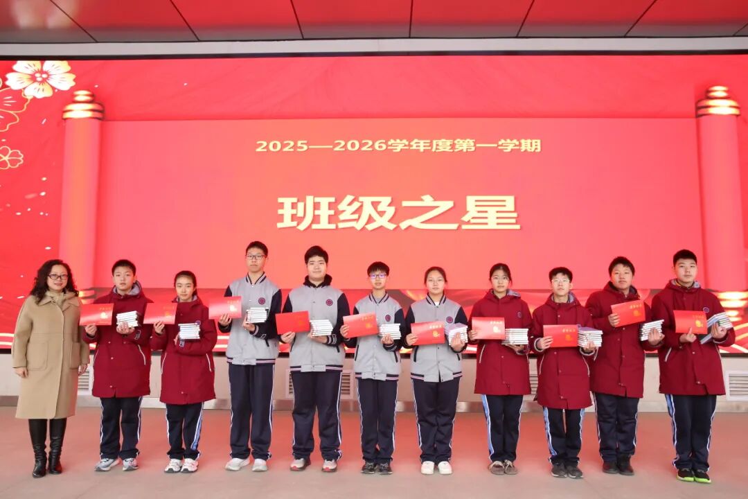 吉小玉书记、李坤副校长依次为模拟政协示范提案、研学标兵、班级之星等获奖同学颁奖,期望全体学子珍惜假期、笃行不怠,以更昂扬的姿态迎接新学期。
