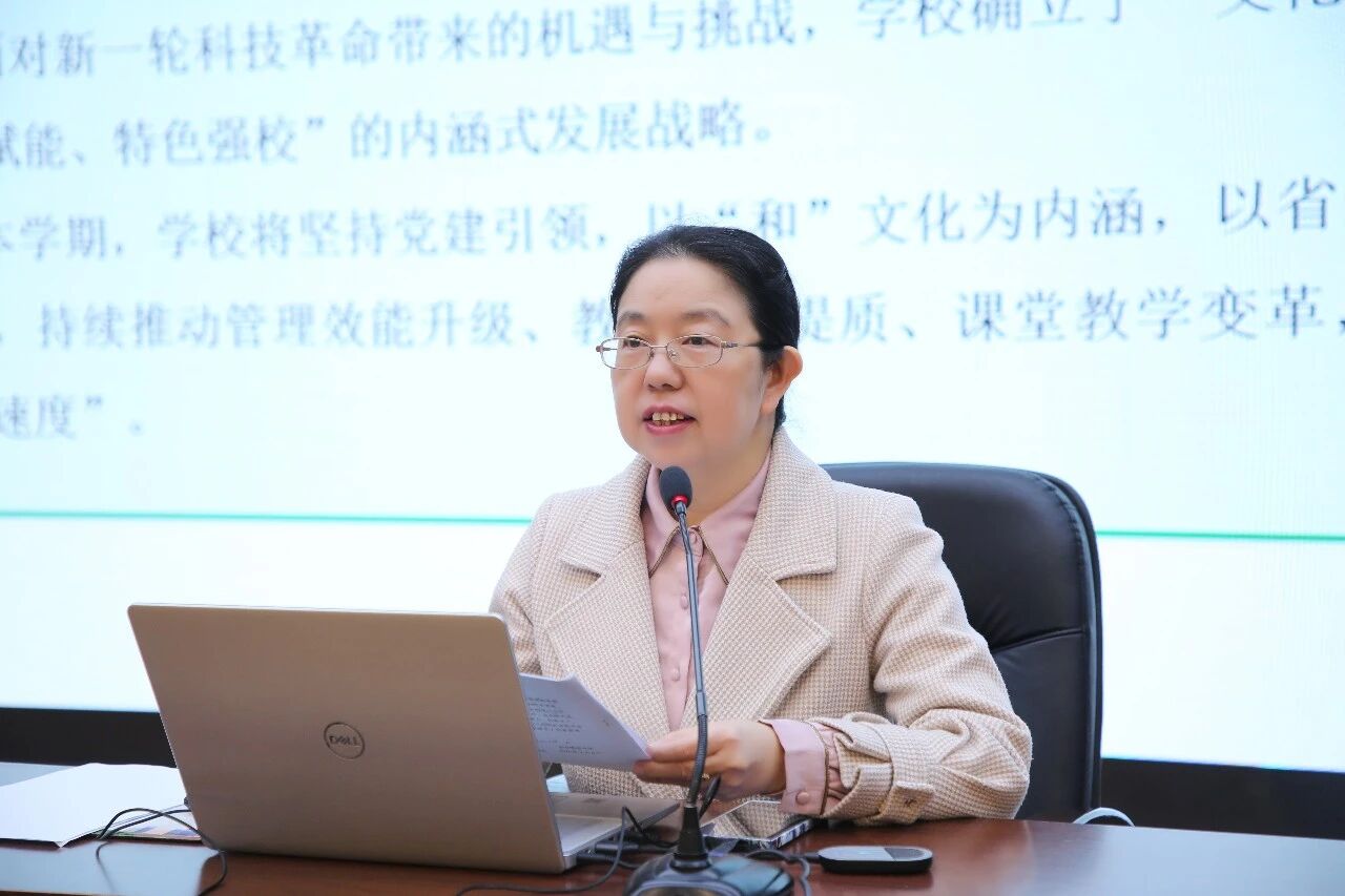 锦园中学常务副校长康艳丽详细介绍了新学期的各项工作安排与部署。她围绕学校“文化铸魂、五育并举、数智赋能、特色强校”的发展战略,从党建文化引领、德育品牌建设、数智化课堂教学变革、师德师风建设、科技艺体特色发展,以及毕业年级备考、家校协同等方面进行了重点部署,鼓励大家以饱满的热情和坚定的信心投入到新学期的工作中,跑出锦园发展的“加速度”。