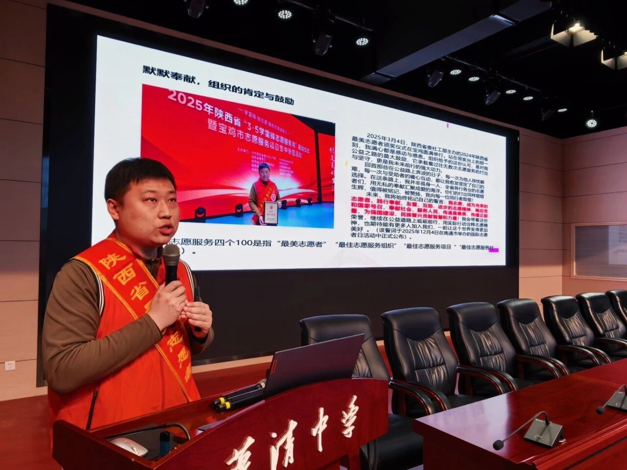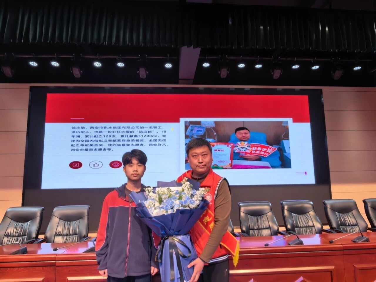 本次“开学第一课”特邀两位优秀嘉宾带来专题分享,内容兼具公益温度与法律深度,为同学们送上了一堂内涵丰富的思想道德教育课。全国无偿献血奉献奖终身荣誉奖获得者、陕西省最美志愿者、西安好人徐杰敏,以《献血传递希望 携手挽救生命》为题展开分享。徐杰敏结合自身18年累计献血128次,52000ml的公益经历,讲述了自己从初次偶遇采血车献血,到历经小意外仍坚守热血公益,甚至在疫情期间冒风险捐献血小板的暖心故事,还分享了西安慈善三献志愿者服务队的公益实践。同时,他为同学们科普了无偿献血的血液常识、献血流程、常见误区,解读了《西安市献血条例》中的优待政策与全国无偿献血表彰标准,以自身行动诠释了“奉献、友爱、互助、进步”的志愿精神,呼吁同学们争做传递温暖的“热血侠”。