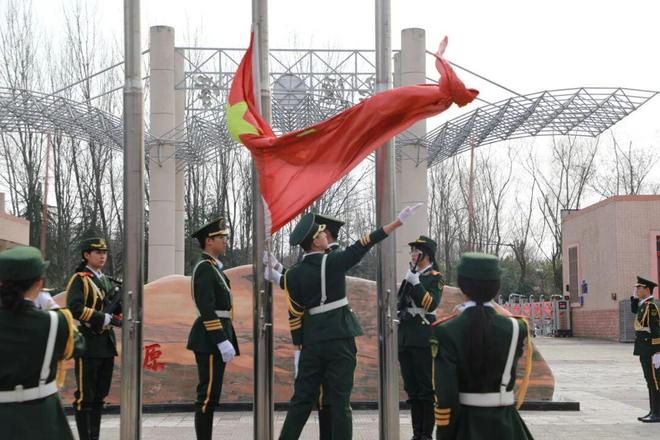 新学期第一次升旗仪式拉开帷幕。护旗手迈着整齐有力的步伐护送国旗,国歌奏响,五星红旗缓缓升起。同学们身着整洁校服,庄严肃立,向国旗行注目礼,目光坚定,满是对知识的渴望和新学期的憧憬。
