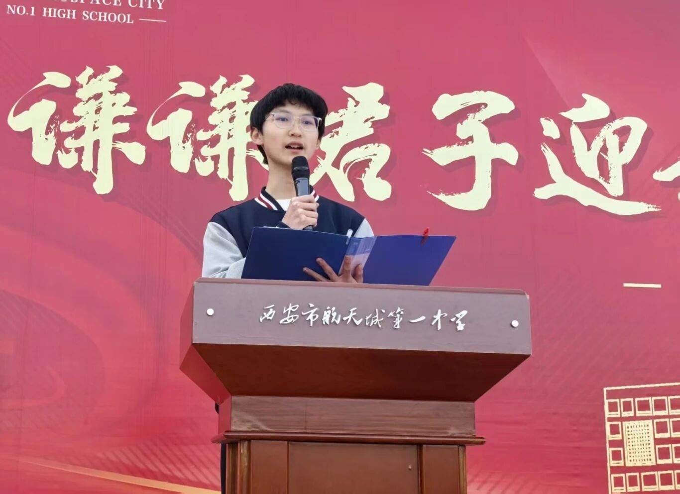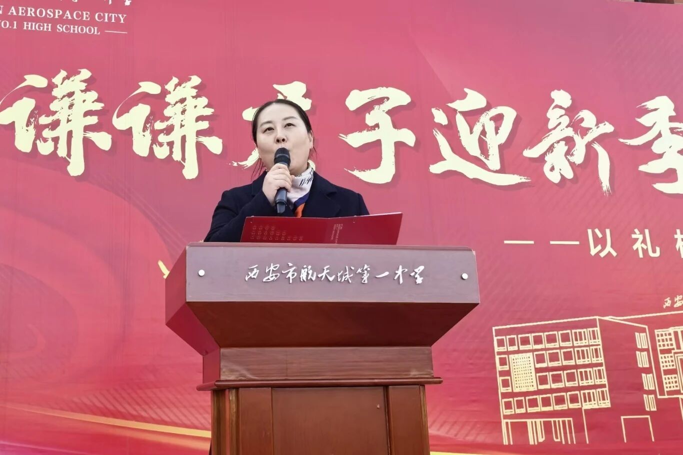 航天一中党支部书记、校长徐雄发表新学期致辞。徐校长结合马年精神、AI时代背景与航一君子文化,寄语全体学子:以德润心,做品行高尚的“千里马”;以智启程,做拥抱AI的“智慧马”;健康第一,做体魄强健的“奋斗马”。