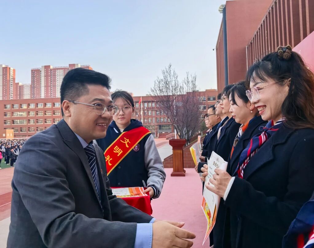 学生成长中心吕志才老师发出新学期德育倡议,号召全体同学以君子文化为引领,以德润身、以文化人,将文明礼仪内化于心、外化于行,让君子文化在校园落地生根。