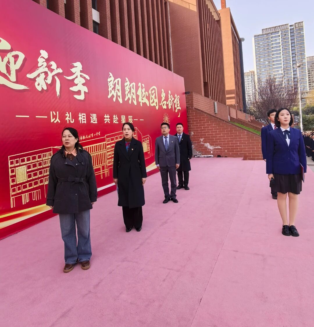 大会在庄严的升国旗仪式中拉开帷幕,全体师生面向国旗,心怀赤诚,共迎新学期的曙光。
