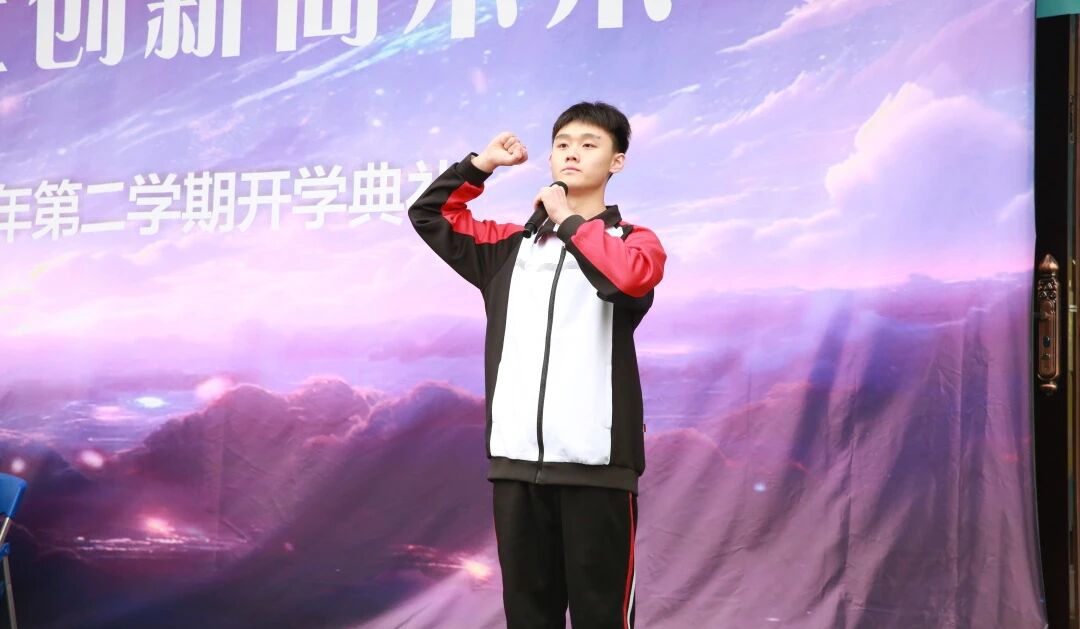 随后,学生代表杨旭辉上台分享心得。他以青春之名,与全体同学共勉:“在航天文化的浸润下,我们首先要心怀感恩,铭记师恩;更要脚踏实地,自律向上,把对星空的无限向往,化作每日的努力。新的学期,愿大家珍惜时光,眼里有光,脚下有路,不负自己,不负时光,在逐梦路上向着星辰大海勇敢出发。”
