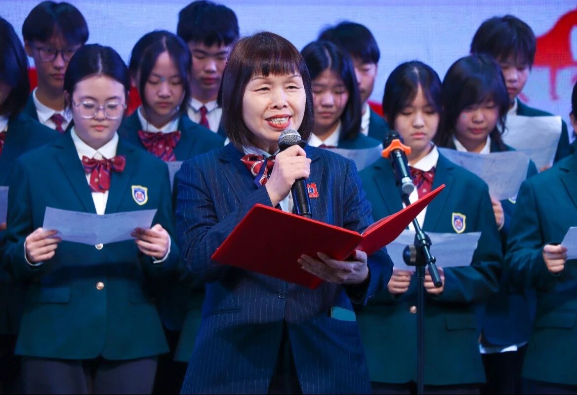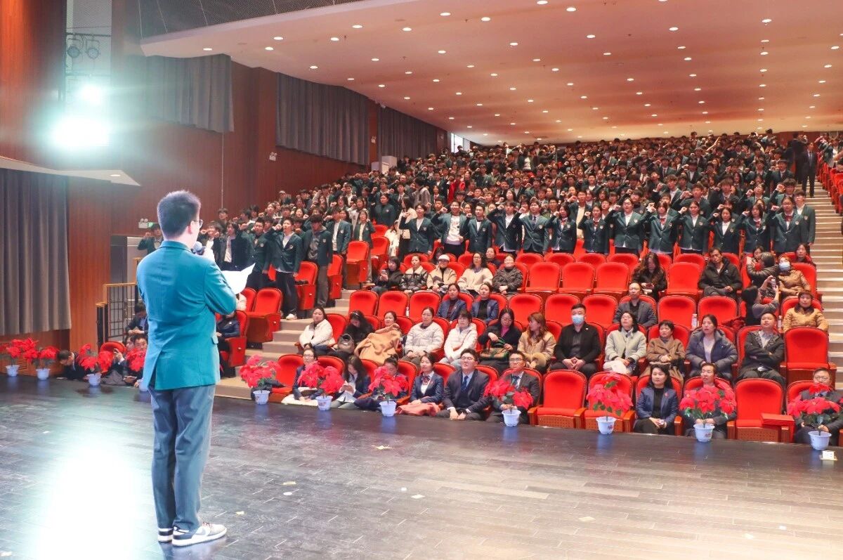 高二(2)班李镇江家长作为家长代表发言,她首先向辛勤付出的校领导与老师们致以感恩,坦言一路见证了学校的稳步发展与孩子们的成长蜕变。随后,她寄语学子们要以梦为马、笃行不怠且心怀感恩。同时,她代表全体家长郑重承诺,将全力配合学校工作,家校携手,共育英才。