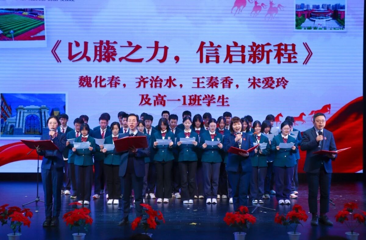 高一(1)班高子昂同学作为学生代表在发言中,以“千里马之姿,赴时代之约”为主题,感恩学校的培育与师长、同窗的陪伴,并分享了自己的学习成长感悟。他号召同学们在新学期夯实知识基础、脚踏实地求索、勇于探索未知,以少年之姿奋力拼搏,以藤为骨、以信为魂,在时代的赛道上书写属于自己的青春答卷。