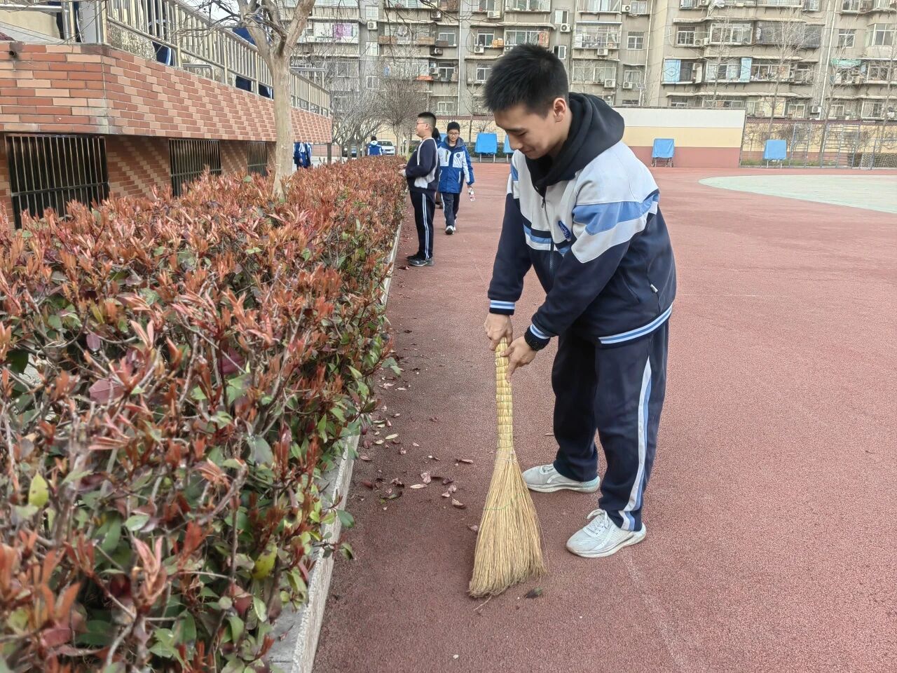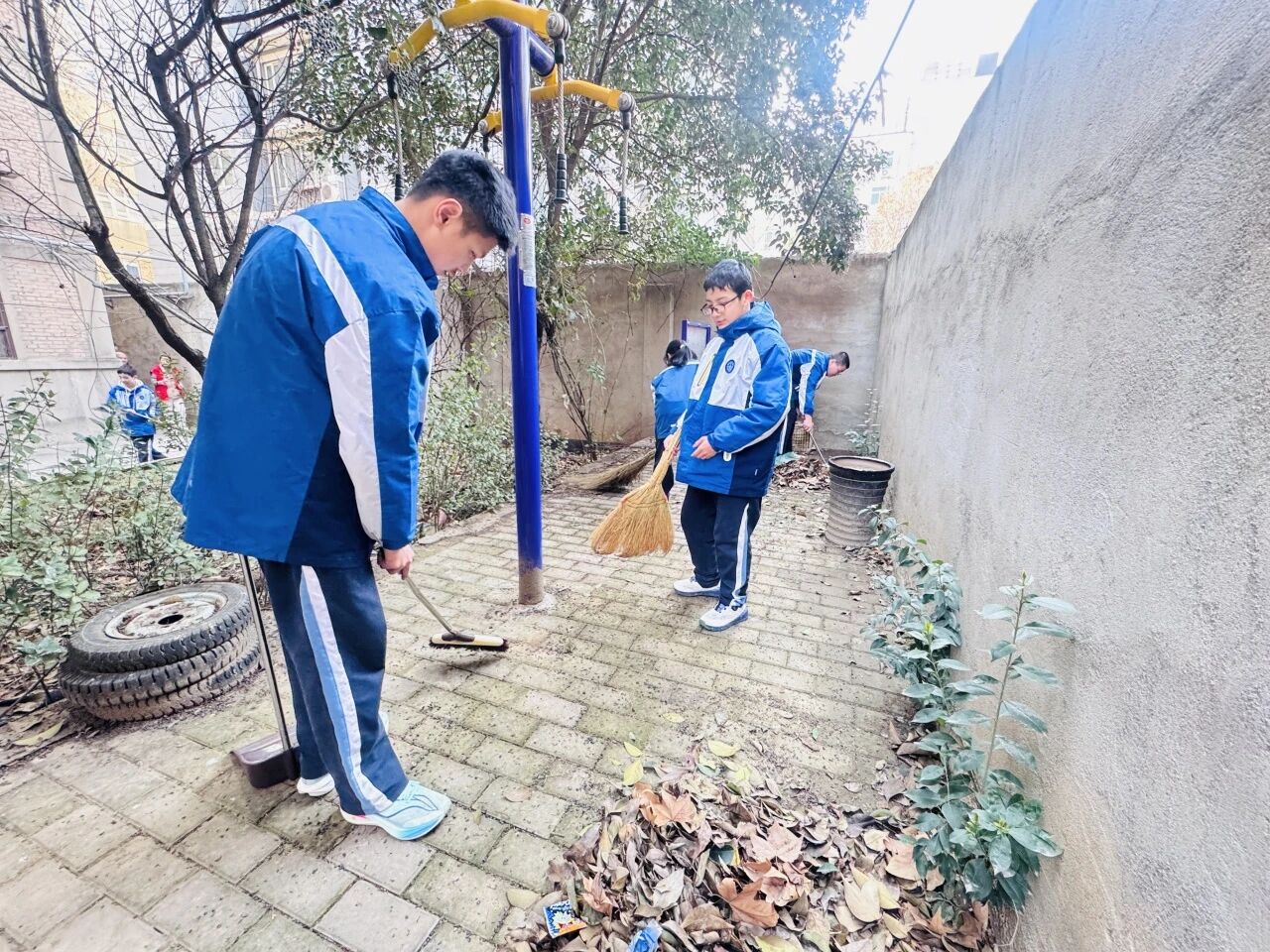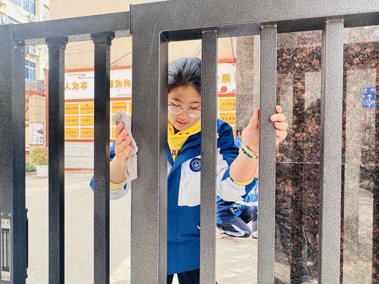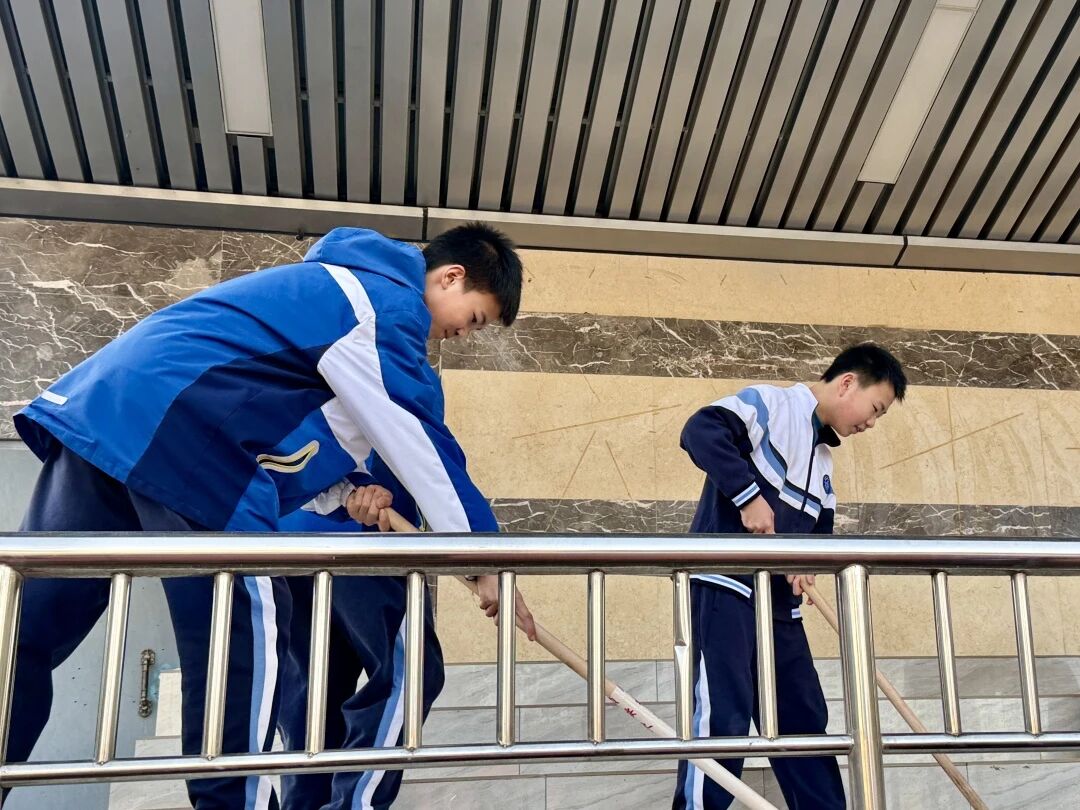 校内初一年级志愿服务队率先行动,对实验楼、公共区域、展板带等进行全面清扫整理。同学们分工协作、认真细致,捡拾垃圾、擦拭展板、清理杂物,用双手美化校园环境,在躬身劳动中增强责任意识,将爱护环境、文明守纪、集体主义精神融入实践,让文明新风浸润校园每一处角落。