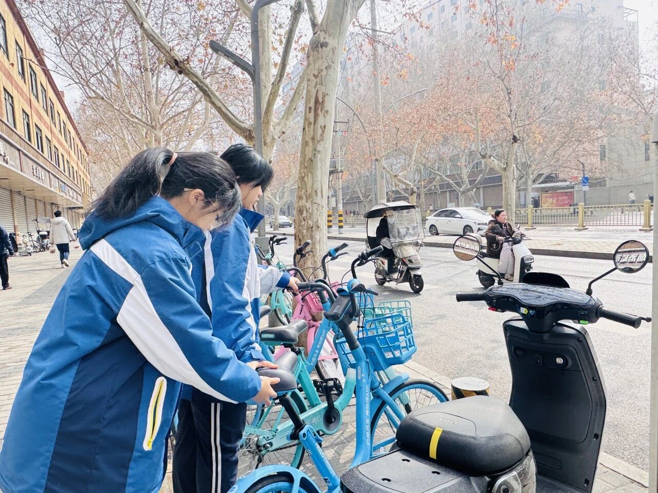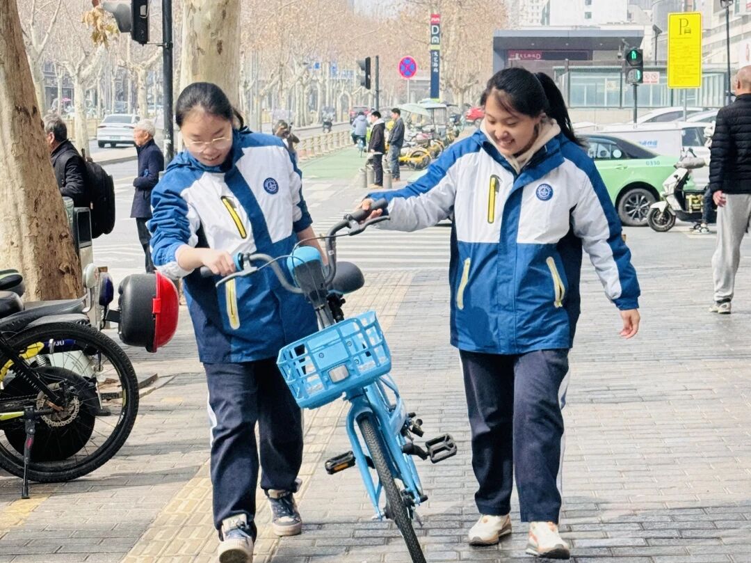 在校外交通要道与街巷,高一年级志愿者们化身文明小使者,有序摆放乱停乱放的共享单车,维护道路整洁畅通;在交通路口,同学们礼貌劝导行人遵守红绿灯、安全过马路,主动帮扶老人、小孩安全通行。以微小之举守护公共秩序,在社会课堂中涵养公德意识,用实际行动诠释新时代青少年的文明素养与社会担当。