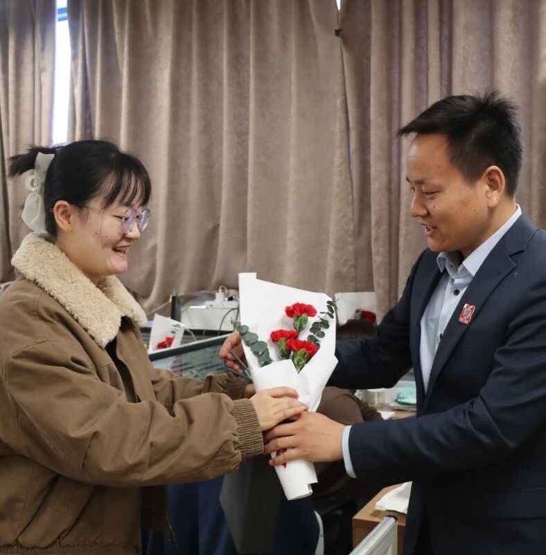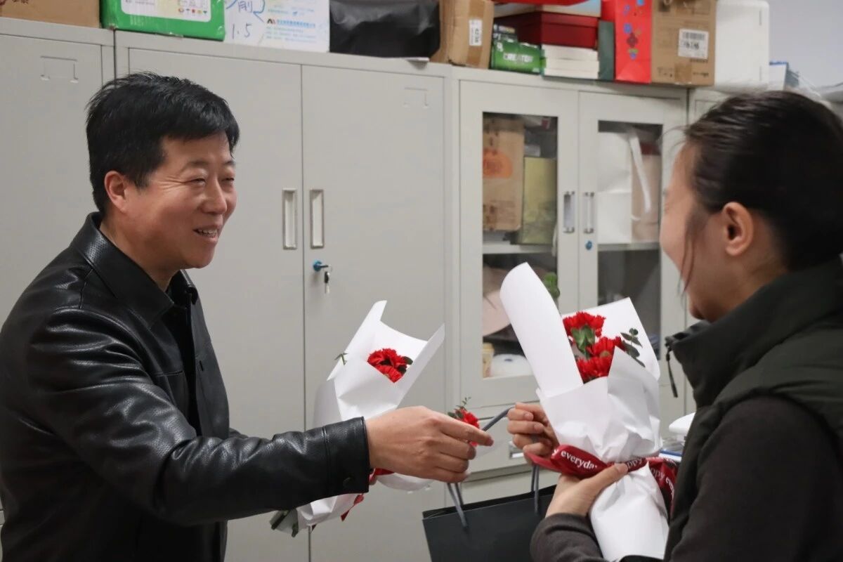 学校领导深入各办公室、各岗位,与女教师们亲切交流,细致询问工作与生活情况,对大家在三尺讲台上的坚守奉献、在教育事业中的深耕笃行表示衷心感谢。一份份精心准备的礼品,承载着学校的温暖与关怀;一句句真切暖心的问候,传递着浓浓的节日祝福,现场氛围温馨而美好。