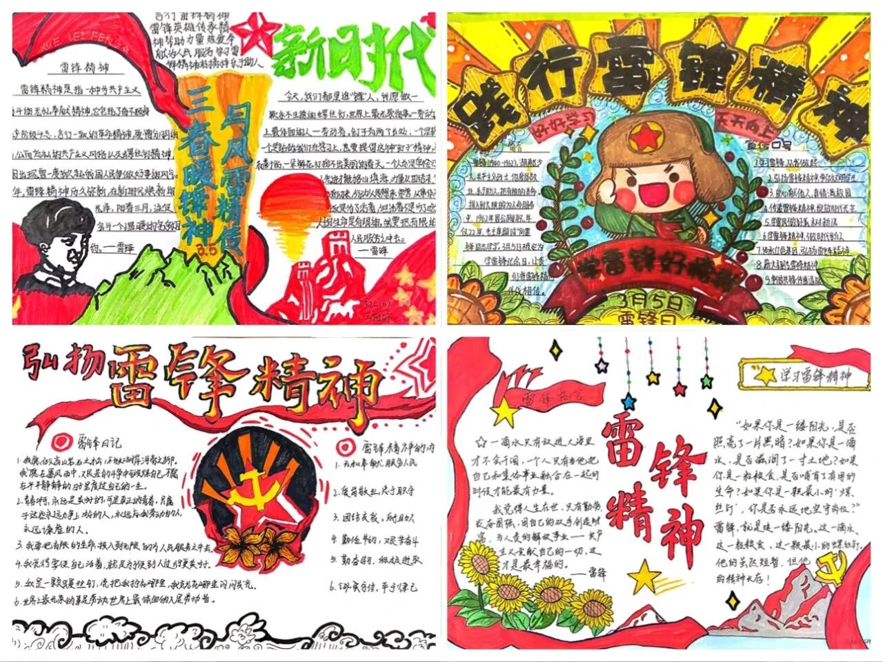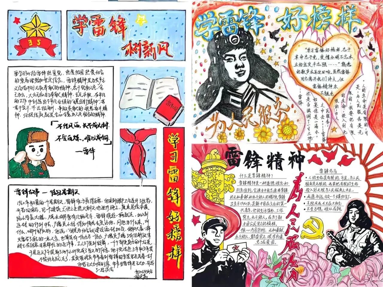 执笔绘就雷锋志,泼墨传承赤子心。同学们精心绘制学雷锋主题手抄报,用缤纷色彩勾勒雷锋身影,用真挚文字书写感悟心得,将对雷锋精神的理解与敬意凝于笔尖、绘于纸上。一笔一画皆是成长,一字一句皆为传承,让雷锋精神在笔墨丹青中扎根心田,真正内化于心、外化于行。