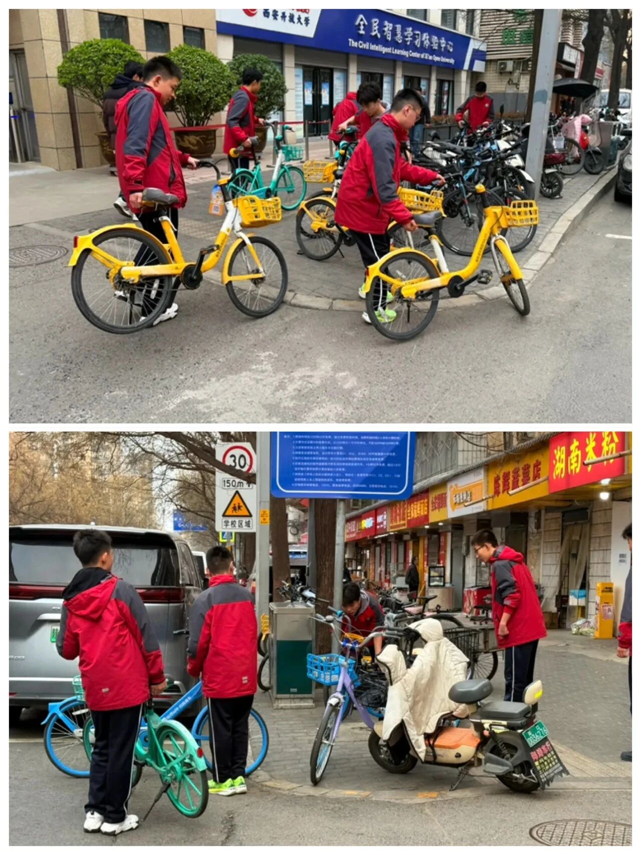 理论与实践并重,六中学子以行动诠释雷锋精神,开展了校内卫生大扫除和校外共享单车整理活动。校园里,同学们分组合作,走廊、操场、主席台焕然一新;校门外,他们将杂乱无章的共享单车一一归位,整齐排列,为城市的美观贡献自己的力量。