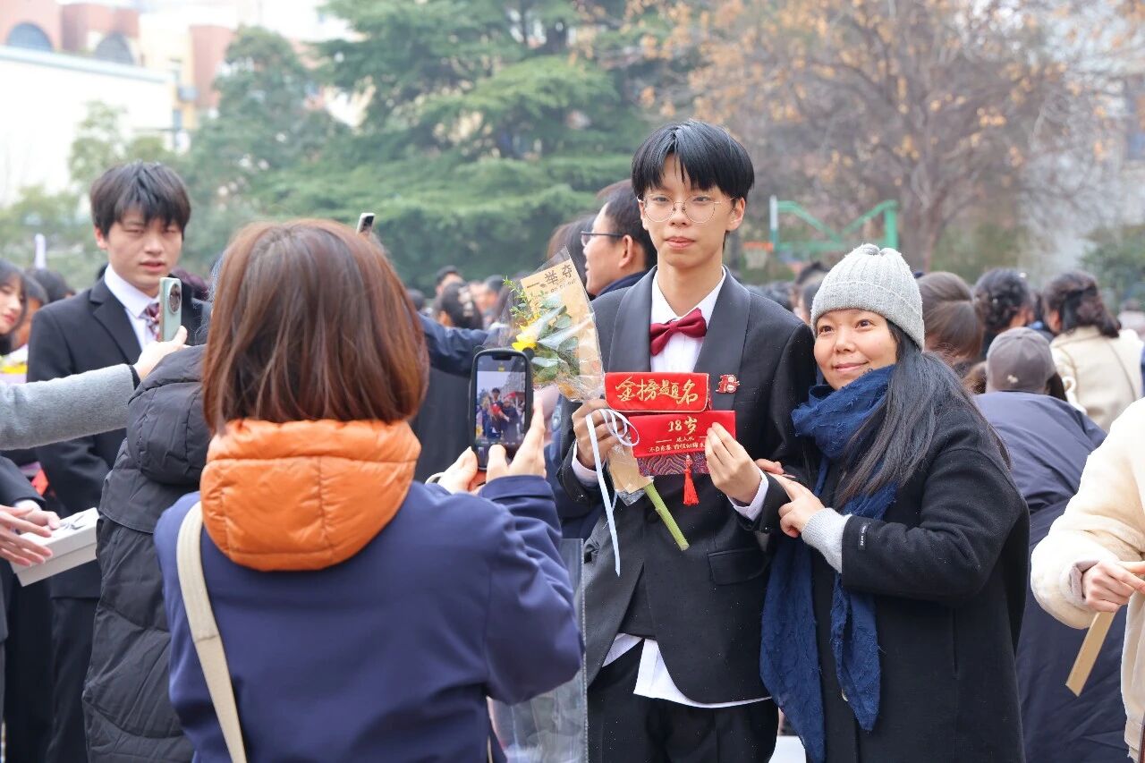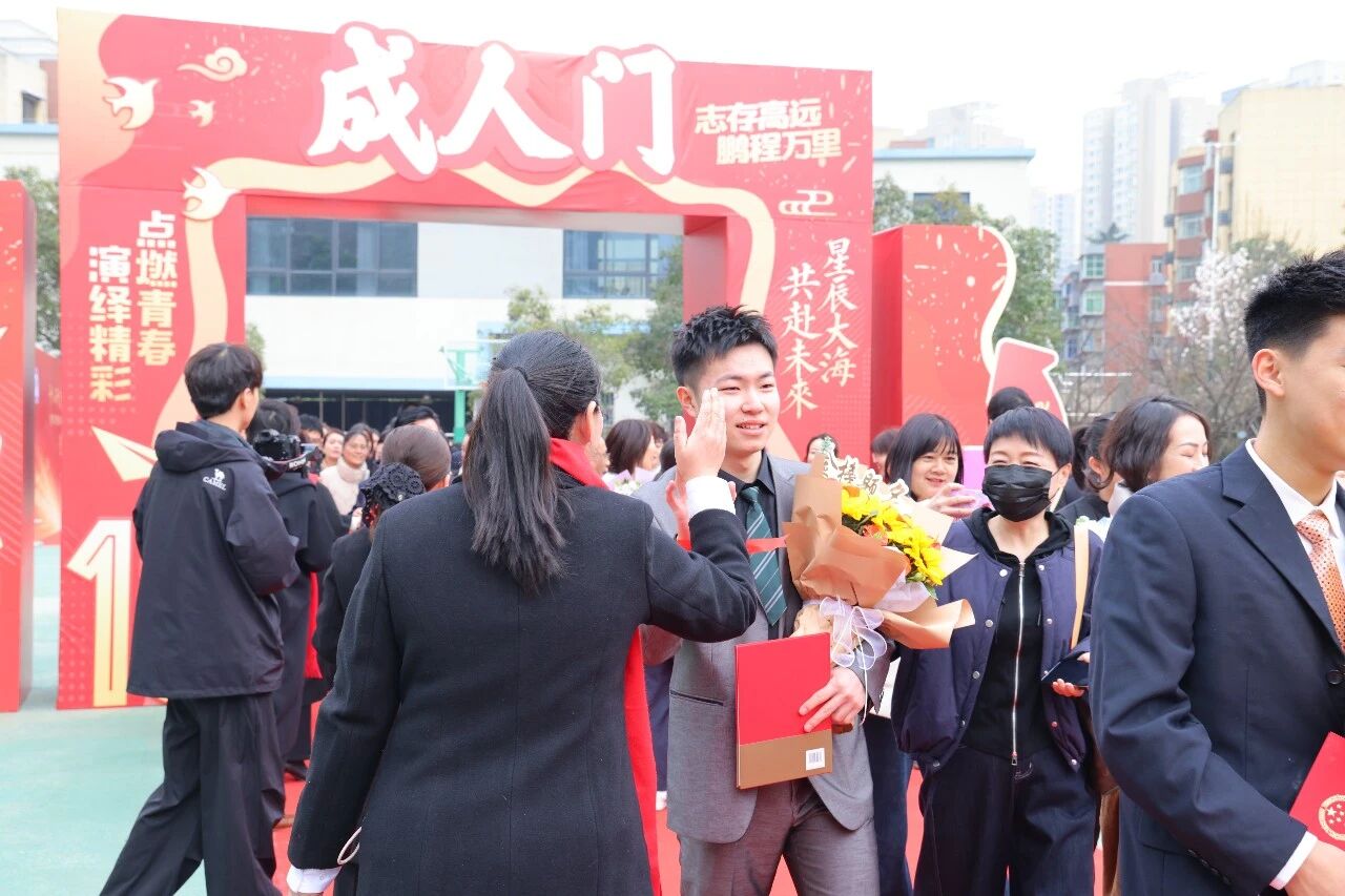 牵手父母,并肩同行。学子们昂首阔步走过成人门,一步跨过少年稚气,一步肩负使命担当。这道门,是告别懵懂的分界线,更是奔赴未来的新起点。