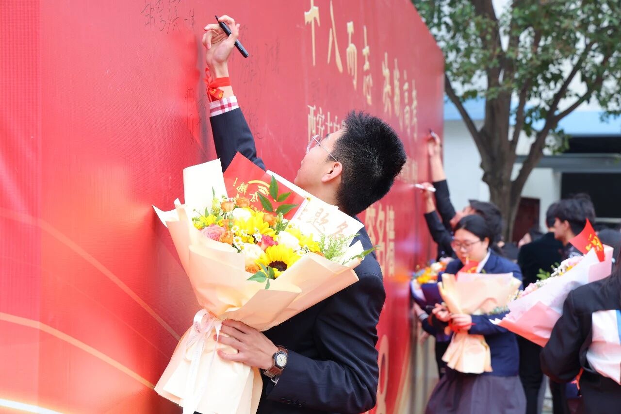 在跨越成人门之前,学子们郑重地在签名墙上落下名字,笔尖游走间,签下的不仅是姓名,更是一份对十八岁的庄严承诺。