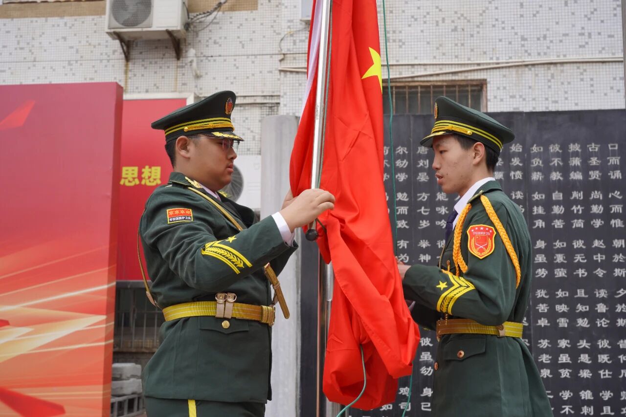 国歌雄壮,红旗漫卷。护旗手迈着铿锵有力的正步,每一步都踏在时光的节拍上。当雄壮的《义勇军进行曲》奏响,五星红旗冉冉升起,猎猎作响间,似在诉说着百年征程的壮阔与少年肩上的使命。