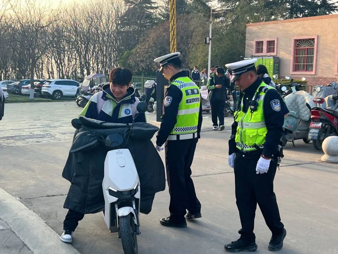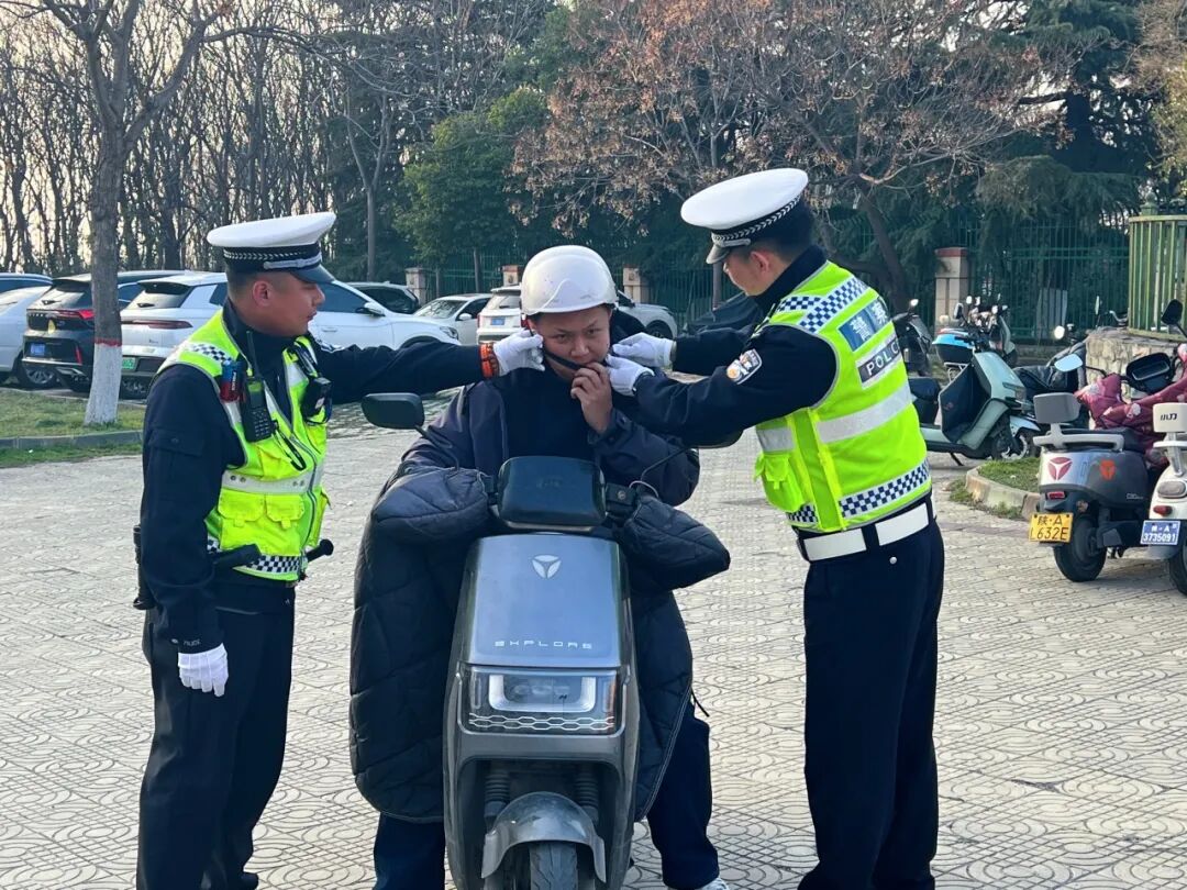 他们现场示范了正确佩戴安全头盔的方法,强调头盔是骑行时的“生命防护盾”,必须系紧卡扣、全程佩戴;详细讲解了骑行电动车的规范动作,提醒同学们骑行时要保持专注,不接打电话、不听音频,双手紧握车把,与其他车辆保持安全距离,避免突然猛拐;同时,针对校门口的交通标识、人行横道、非机动车道等,指导同学们如何安全通行、规范停放电动车,杜绝违规载人、超速行驶、占用机动车道等危险行为。