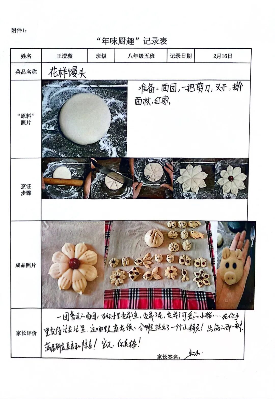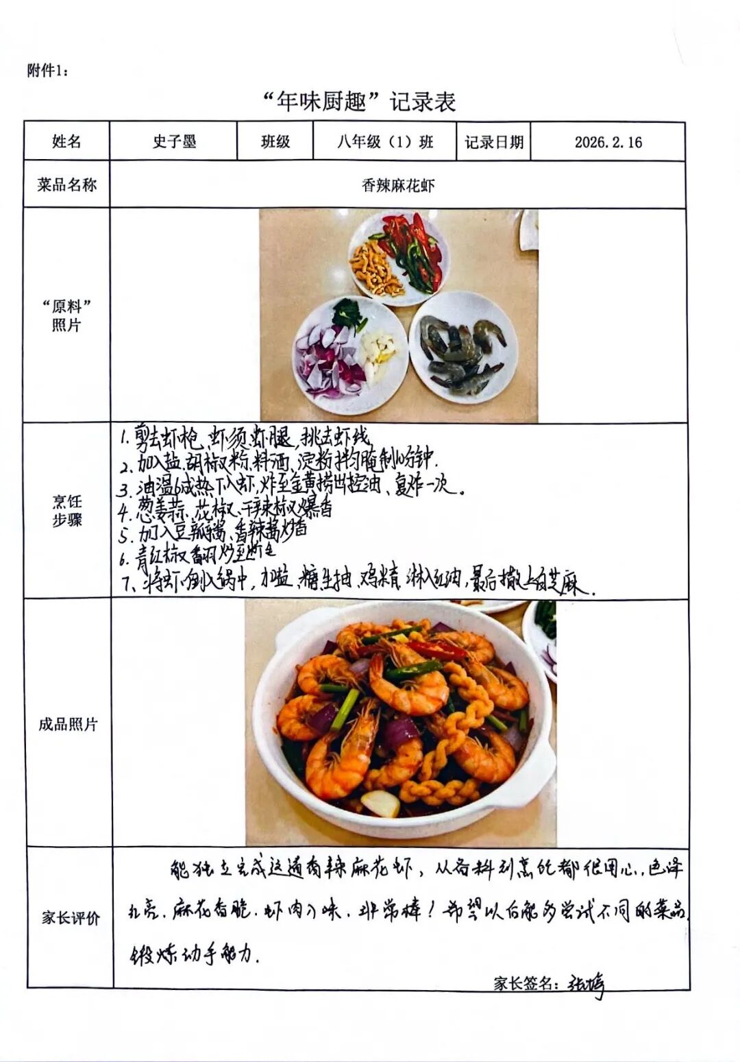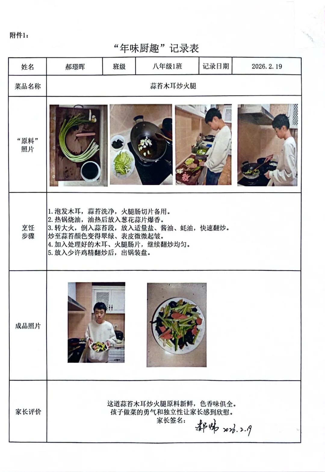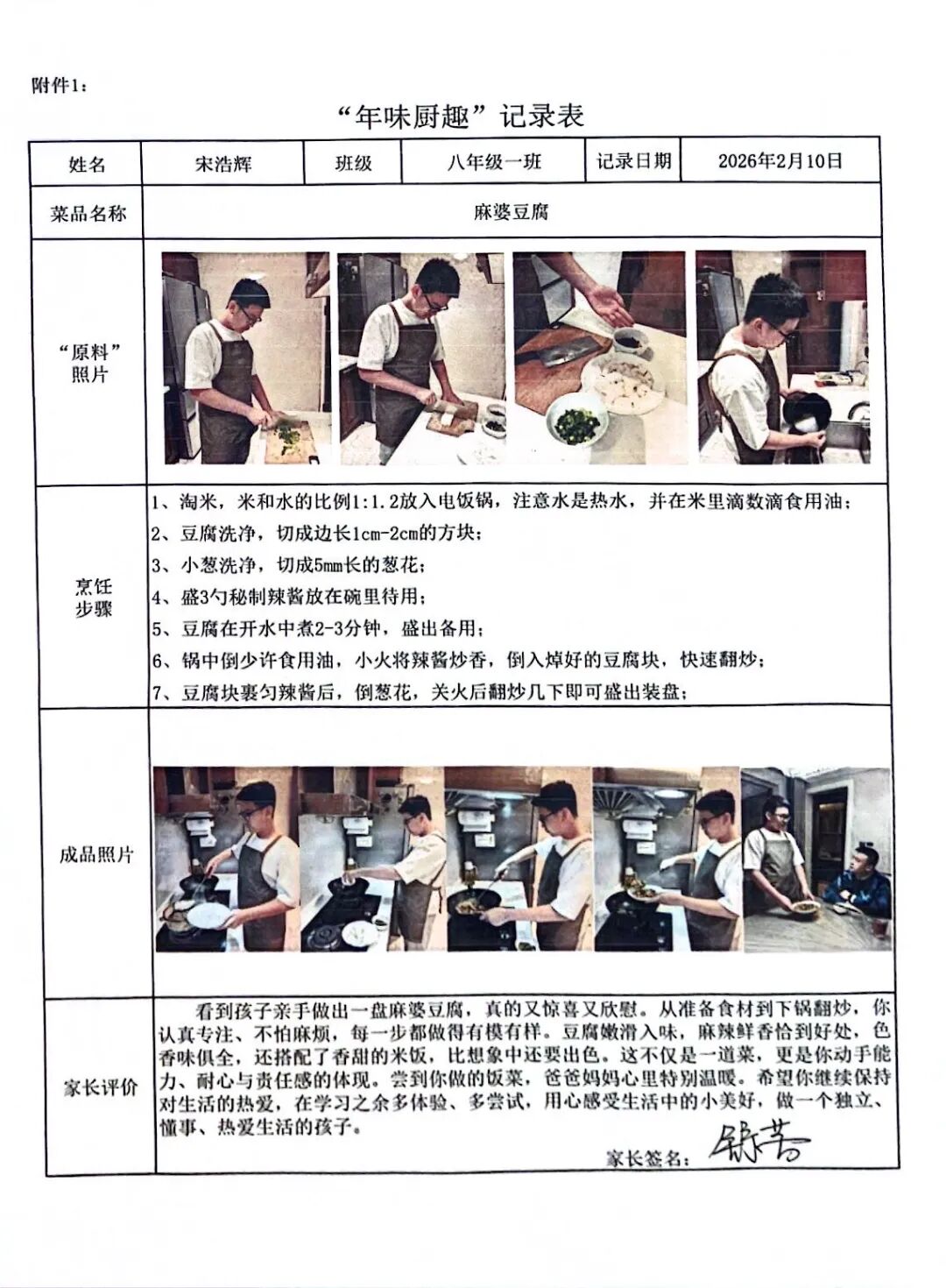 【年味厨趣·知恩懂礼】围裙系上的是责任,灶台升起的是温情。同学们从选材备菜到掌勺烹饪,独立完成一道充满年味的佳肴。作业中,不仅有清晰的步骤图解和诱人的成品特写,更流淌着对父母辛劳的深刻体谅。这一餐饭,让孩子们在烟火气中读懂了“一粥一饭,当思来处不易”,将感恩之心化为实际行动。
