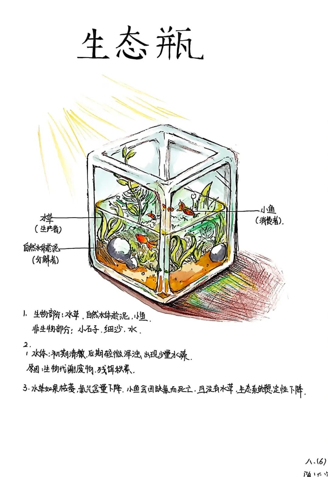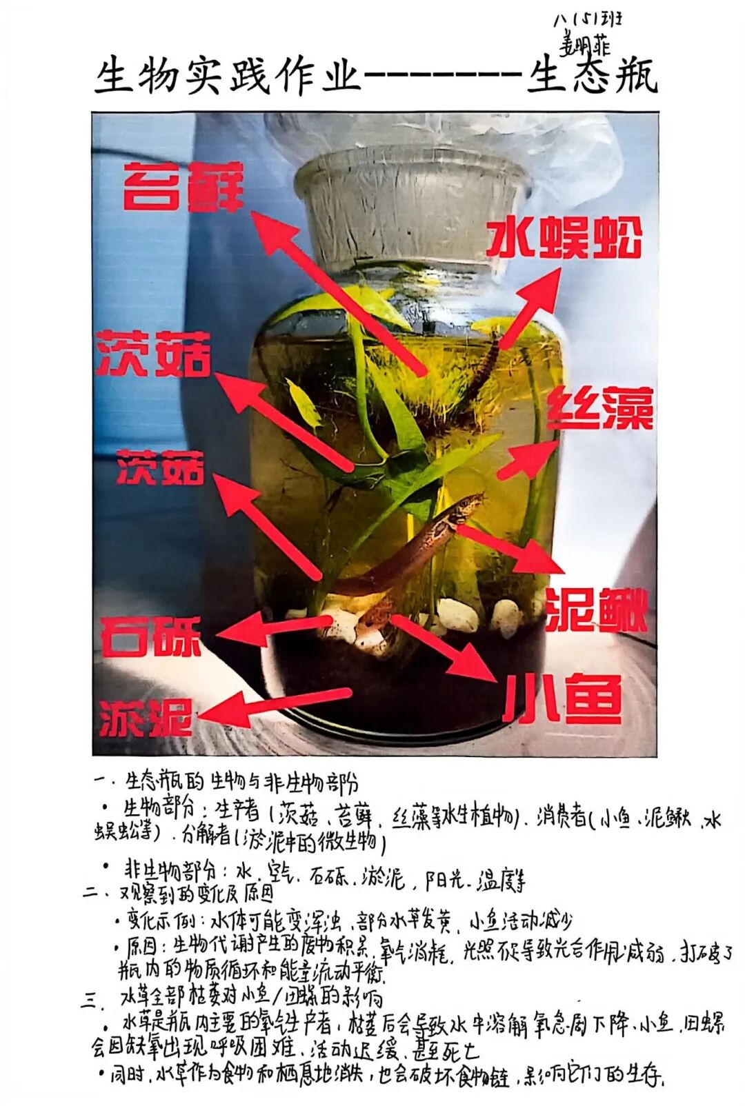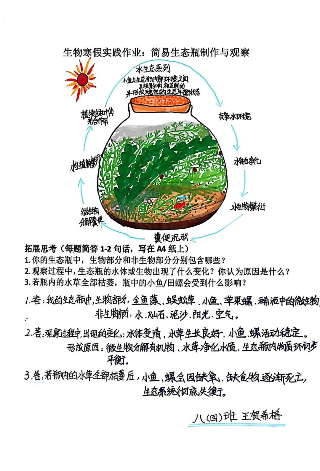 【生态瓶·生命观察】一个小小的玻璃瓶,就是一个微型的生态系统。孩子们放入水草、小鱼、小虾,构建起一个自我循环的生命世界。在每日的观察与记录中,他们真切感受到了生命的奇妙与生态的平衡。