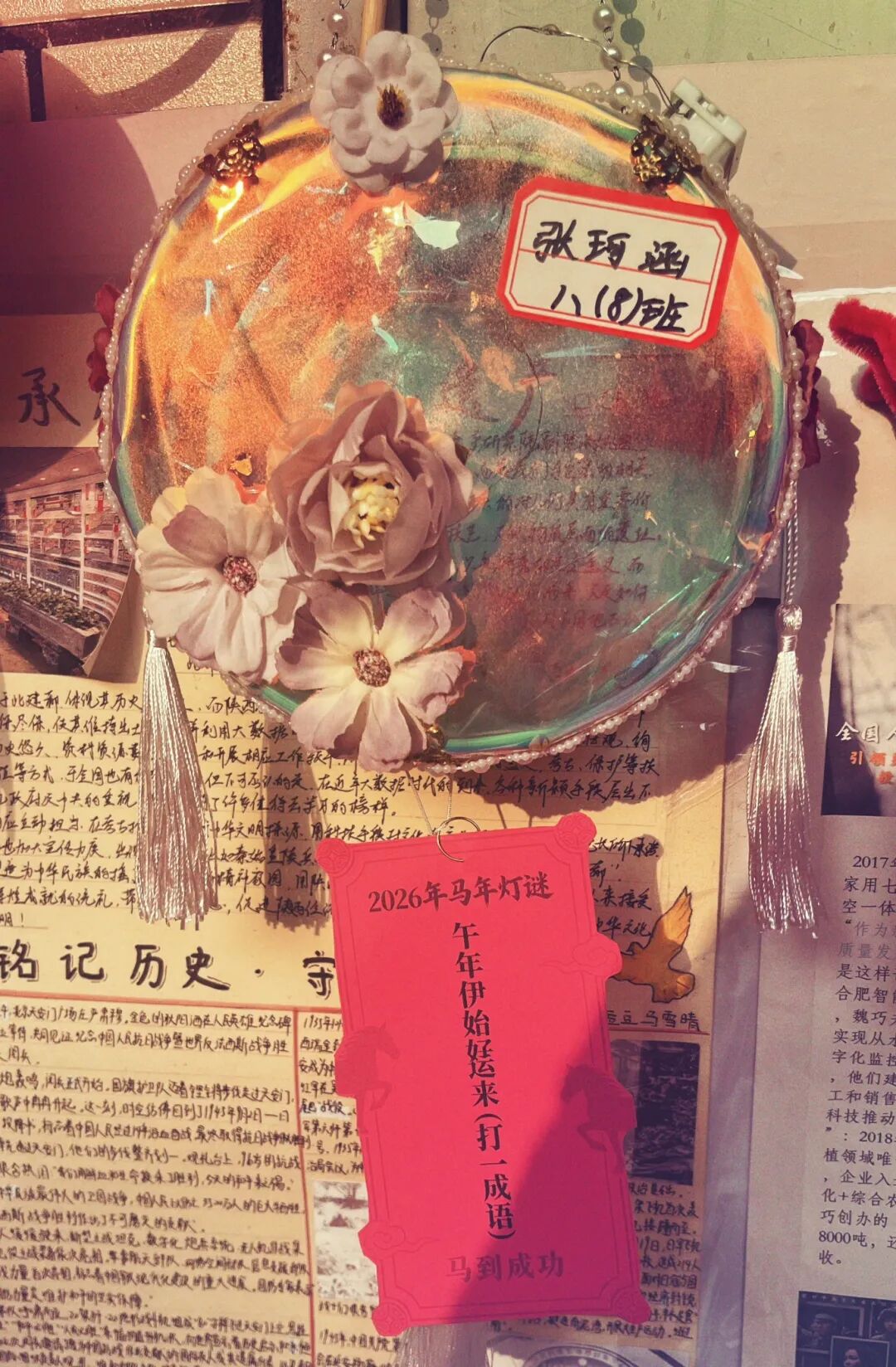 【手工灯笼·光映文心】同学们利用各种材料制作出一个个独具匠心的灯笼。更妙的是,灯下悬挂的自创灯谜,将文学创作与传统民俗完美嫁接。光影摇曳间,闪烁的是智慧的火花,照亮的是文化自信。