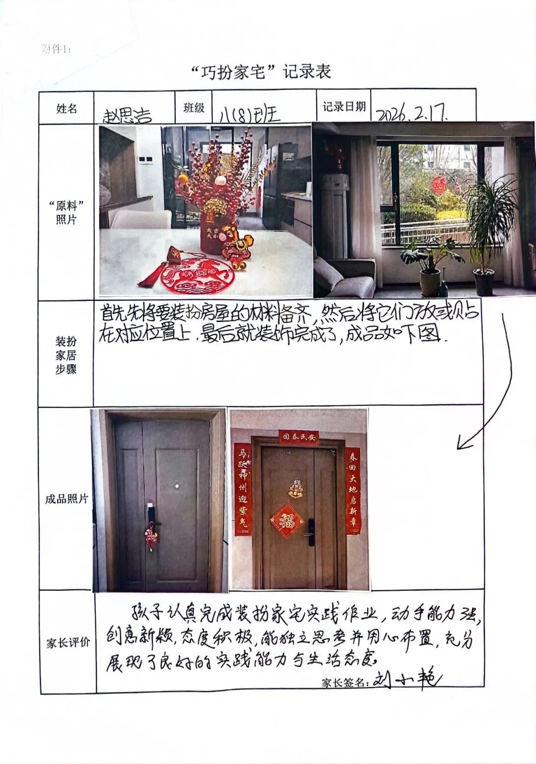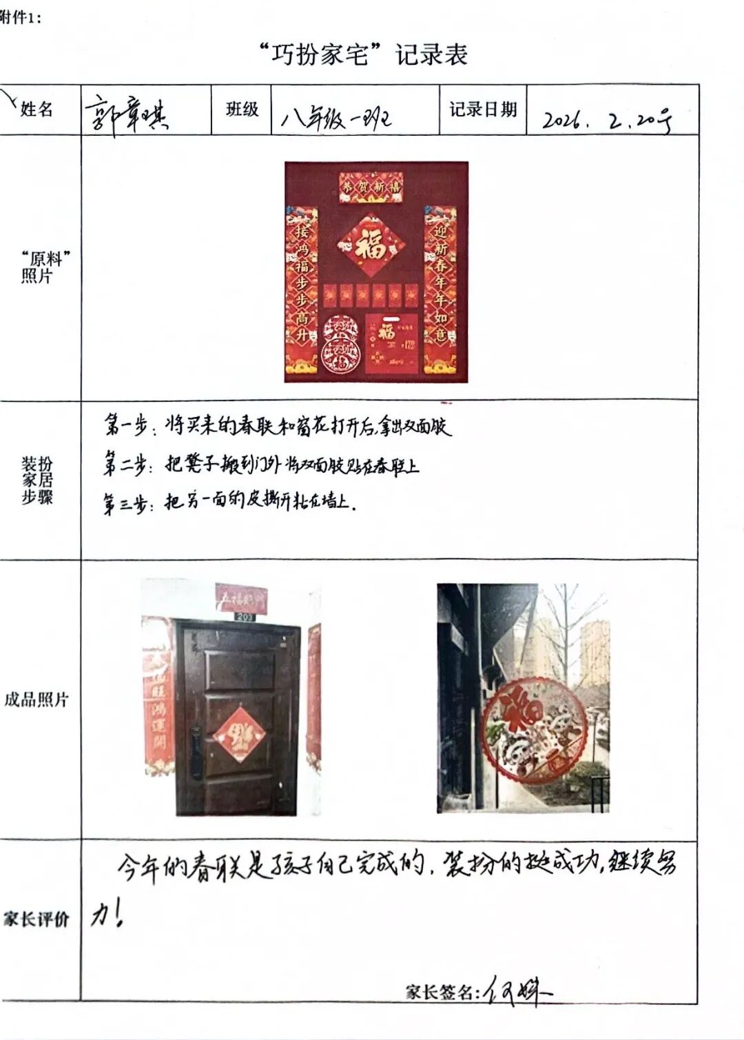 【巧扮家宅·文化传承】贴春联、剪窗花、挂福字……孩子们用灵巧的双手装点家园。在红红火火的民俗实践中,他们不仅感受着节日的喜庆,更在指尖的流转中触摸中华文化的脉络,让传统文化的种子在家庭中生根发芽。