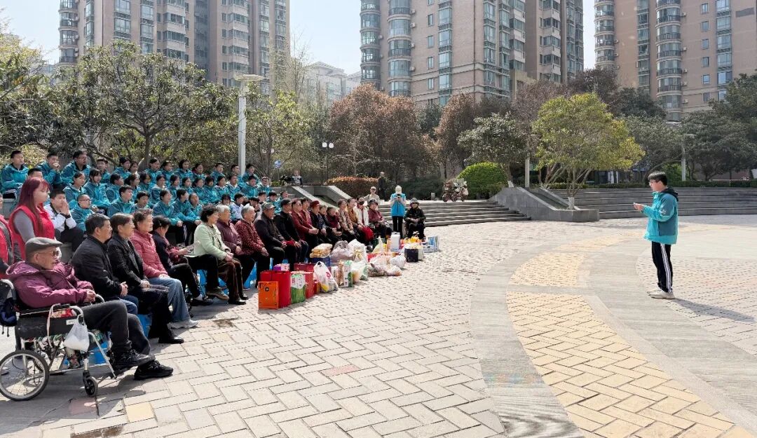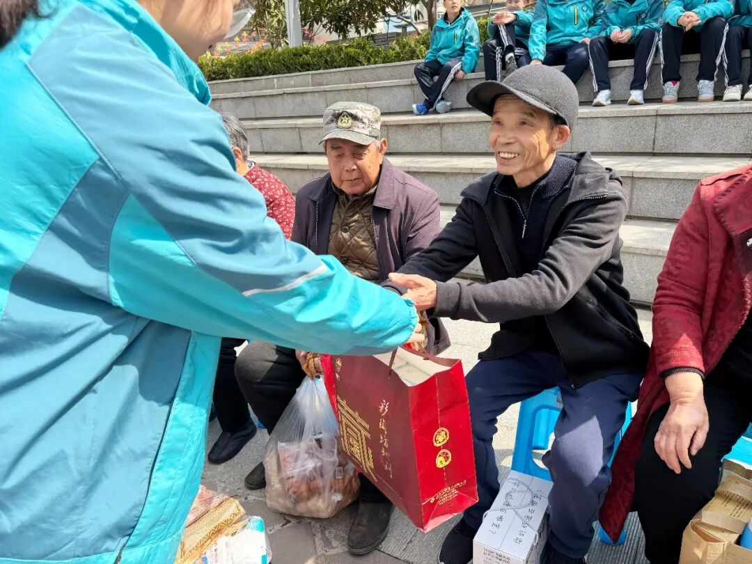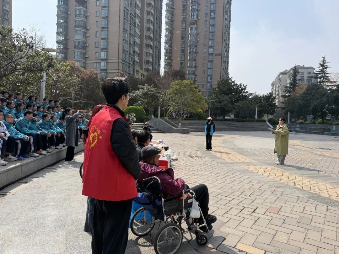 活动第一阶段,带着精心准备的慰问品与家长们的殷切嘱托,学子们在团委干部的带领下,有序集合在锦园社区下沉广场,与社区独居、空巢老人们温情相聚。此次活动得到了锦园社区的全力支持,社区工作人员提前对接老人信息、布置活动场地,为活动顺利开展提供了有力保障,彰显了家校社协同育人的强大合力。随后,学子们献上精心编排的文艺节目,清脆的歌声、轻快的舞蹈,驱散了春日的微凉,也温暖了老人们的心房。一句句亲切的问候、一个个贴心的举动——陪老人闲话家常、为老人讲解日常安全知识,不仅驱散了老人的孤单,更让尊老敬老的传统美德在陪伴中落地生根。
