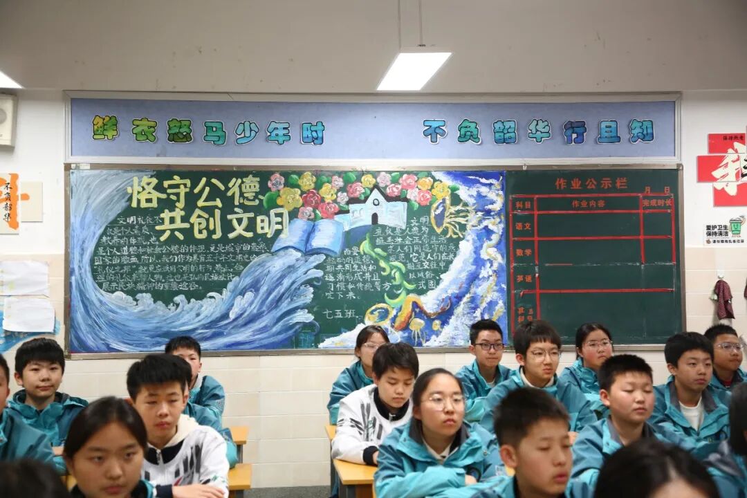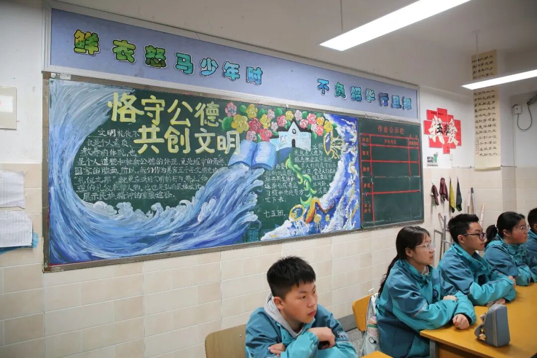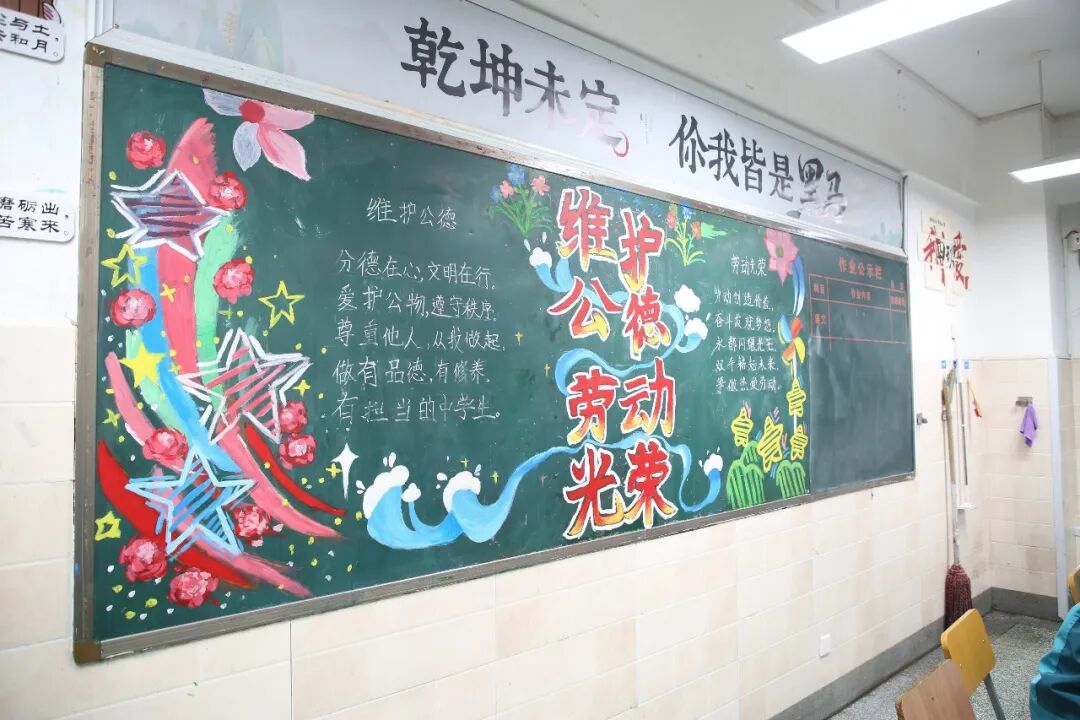 活动筹备阶段,各班师生积极响应、精心谋划,紧扣班级特色与育人目标,对教室进行全方位、精细化打造。漫步教学楼内,各班教室亮点纷呈、各美其美,雅致清新的氛围与蓬勃向上的朝气扑面而来。干净光洁的地面、整齐有序的桌椅,筑牢了“优美教室”的基础底色;绿意盎然的植物角,鲜翠绿植错落点缀,为教室注入盎然春日活力;书香氤氲的图书角,各类书籍整齐陈列,为学子搭建起阅读求知、浸润心灵的小天地;创意精巧的黑板报,主题鲜明、内容鲜活,或书写新学期奋进理想,或展现班级独特风貌,成为教室中一道亮眼景致;特色文化墙面上,学子们的书画作品、荣誉奖状、学习心得错落张贴,让墙壁“说话”、让文化传声,传递着积极向上的青春力量;规范清晰的公告栏,有序呈现班级公约、作息安排等内容,为高效有序的班级管理筑牢保障。每一处布置都凝聚着师生的巧思与心血,完美诠释了“和而不同,美美与共”的校园文化内涵。