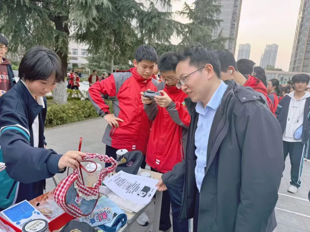 活动组织中,史建奎校长与同学互动交谈,并勉励同学们健康生活、快乐生活,在生活中学习,在学习中成长。