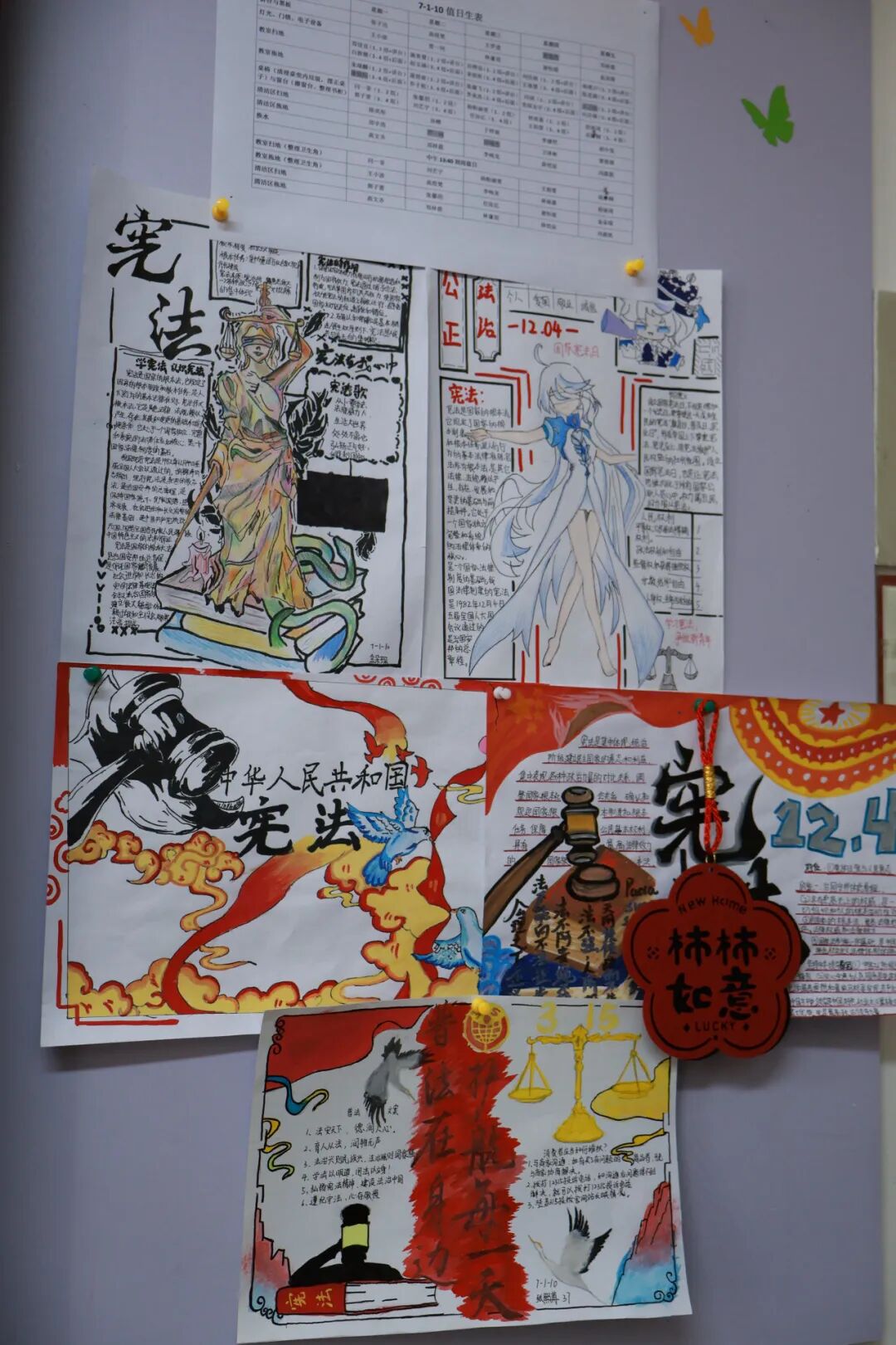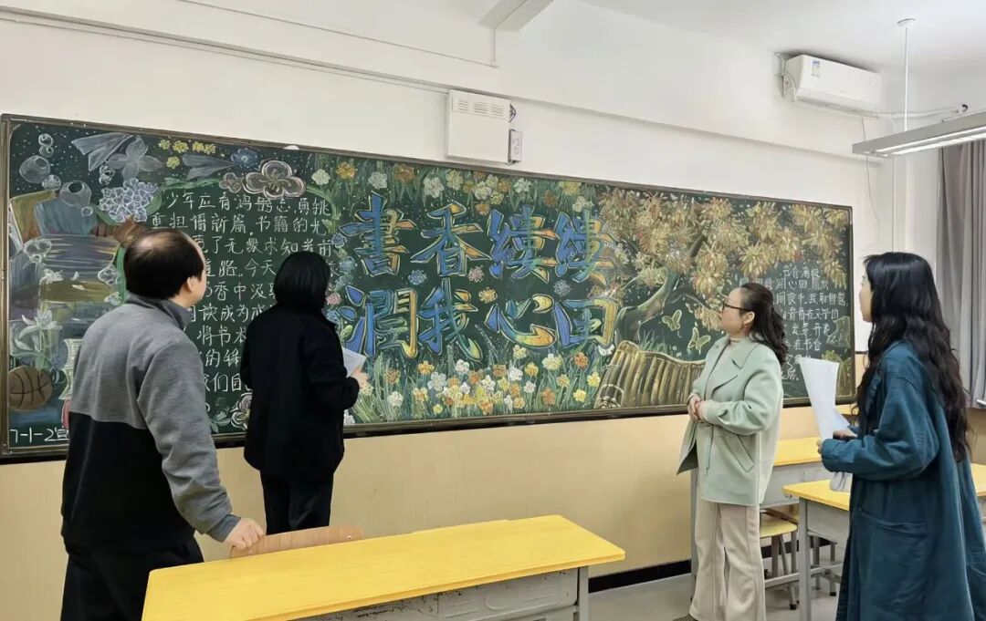 由校领导、年级组长、行政干事及学生代表组成的评审团走进每一间教室,感受到的是焕然一新的空间气质——墙面灵动生趣,书架书香氤氲,方寸之间尽显班级风貌。