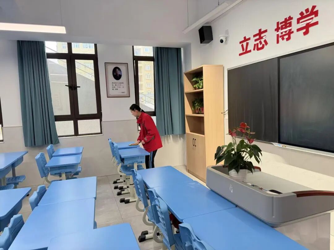 活动伊始,校园里便涌动着忙碌而欢快的身影。同学们或搬运绿植,或擦拭窗台,或精心布置班级文化墙,分工协作、井然有序。劳动工具碰撞出清脆节拍,欢声笑语交织成春日序曲。