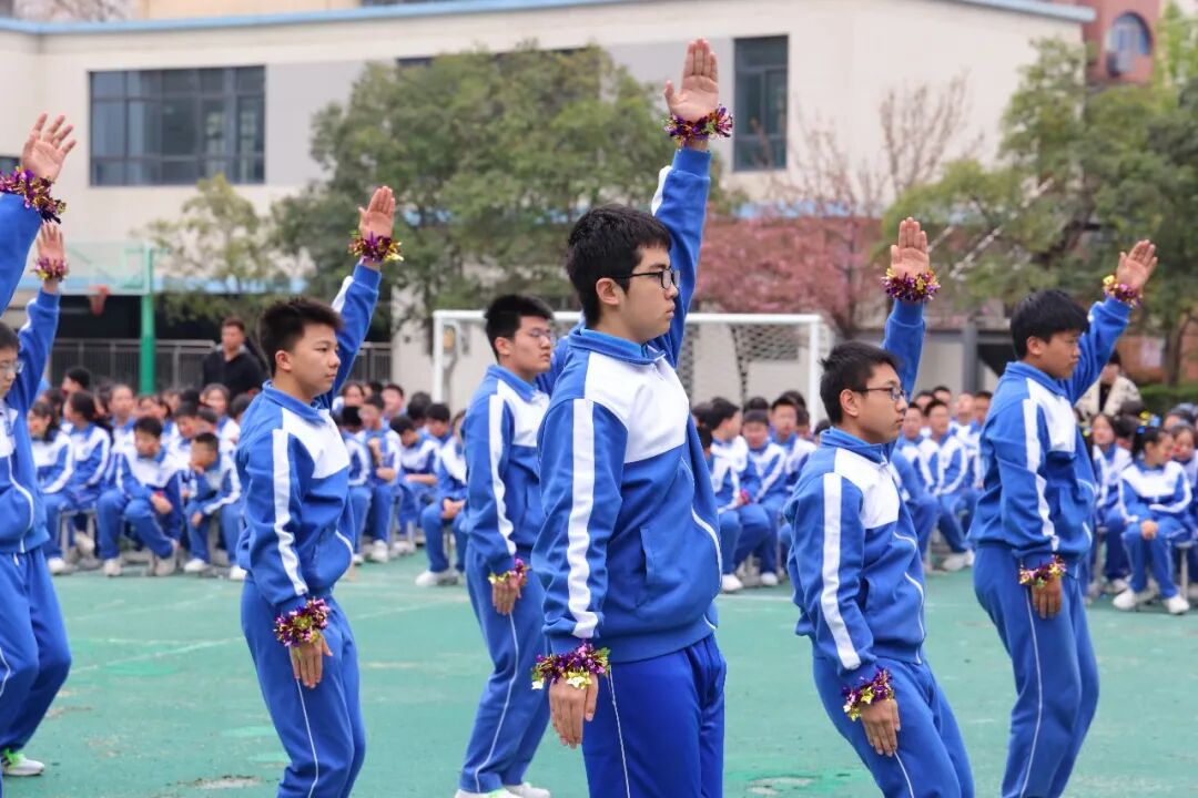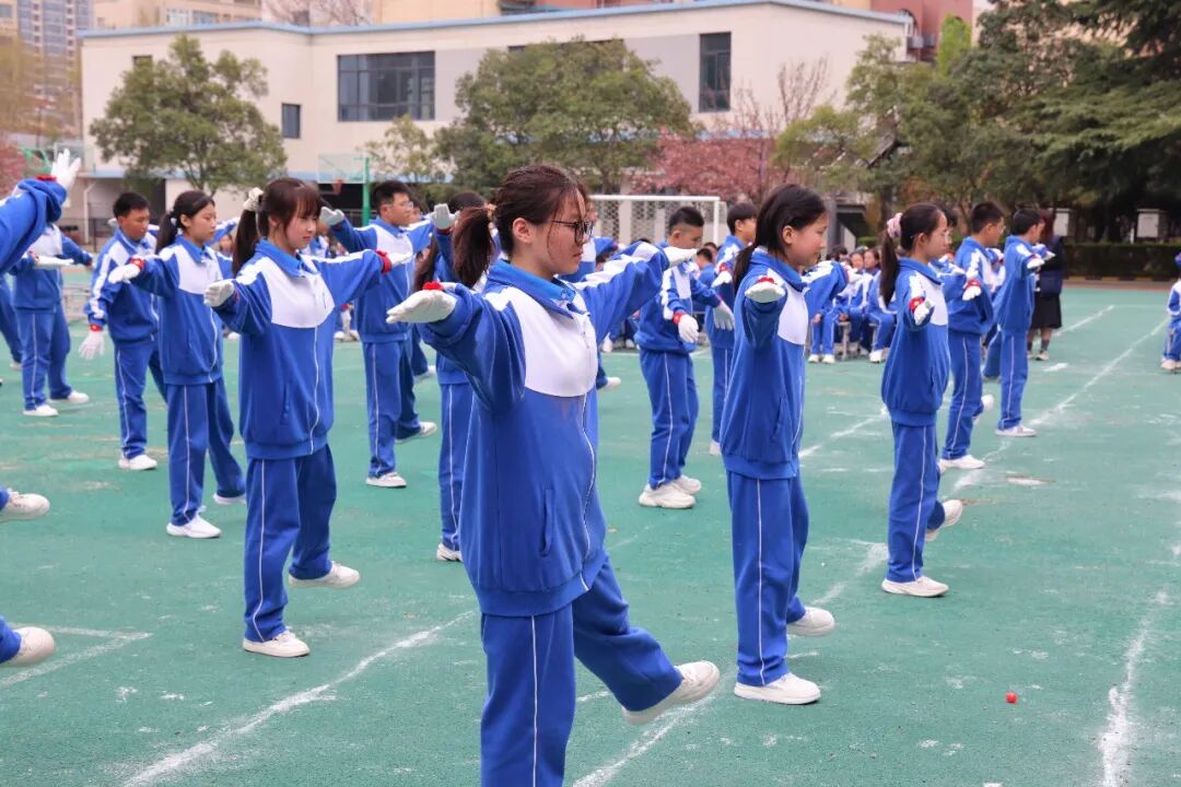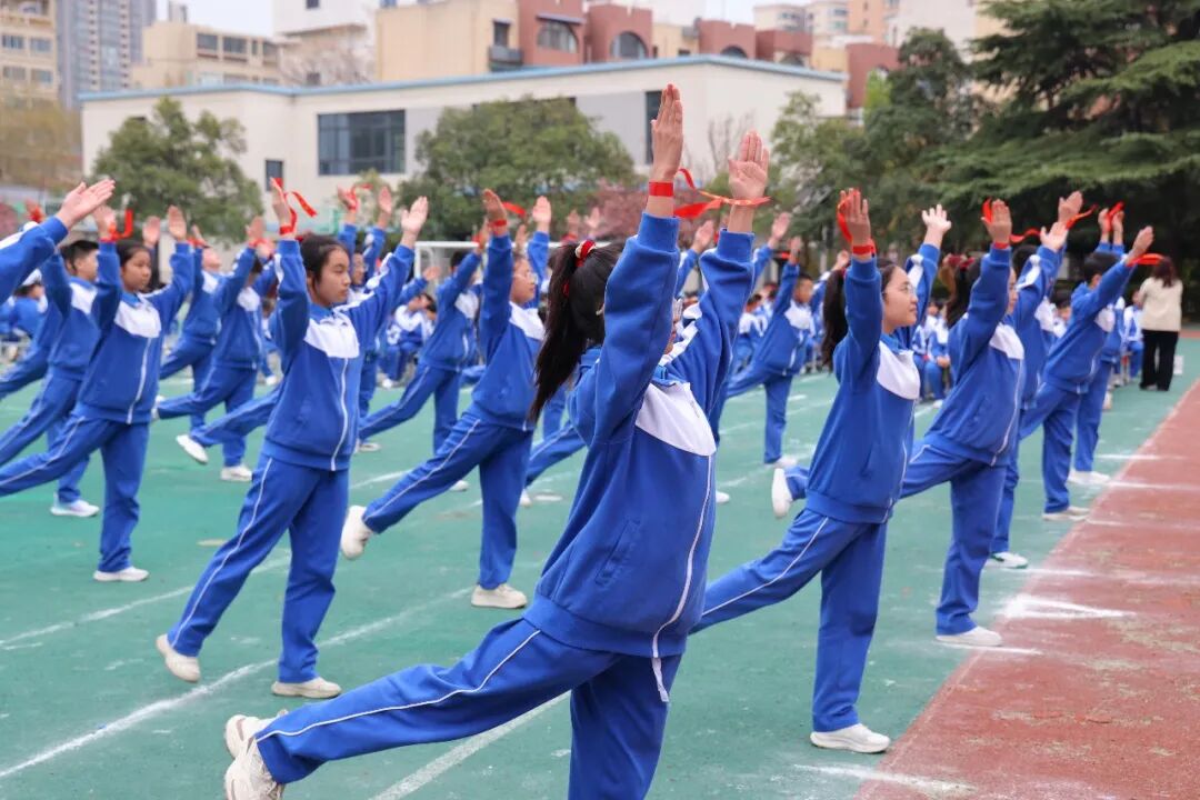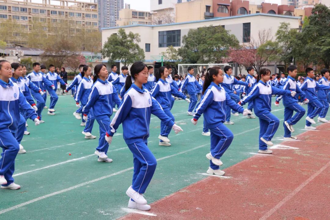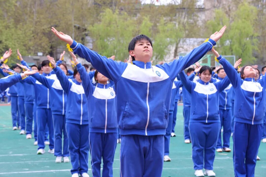 初一、高一年级全体学子以班为阵、以操为语,在阳光赛场之上,用标准的动作、昂扬的姿态,诠释青春的蓬勃力量,演绎集体的同心之美。