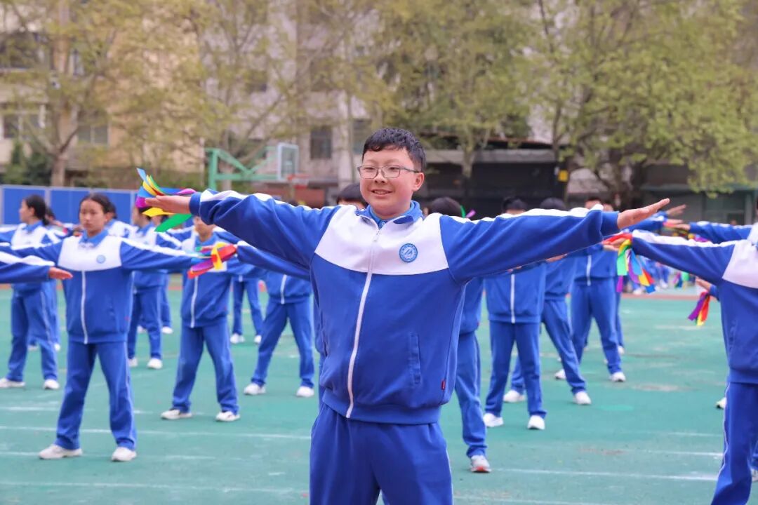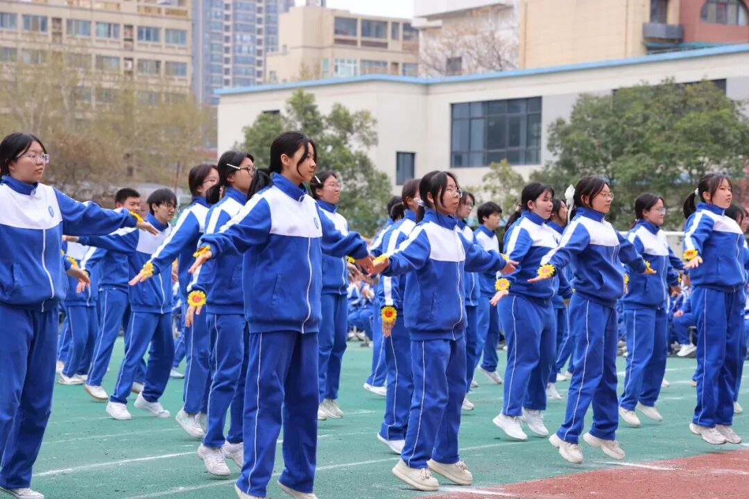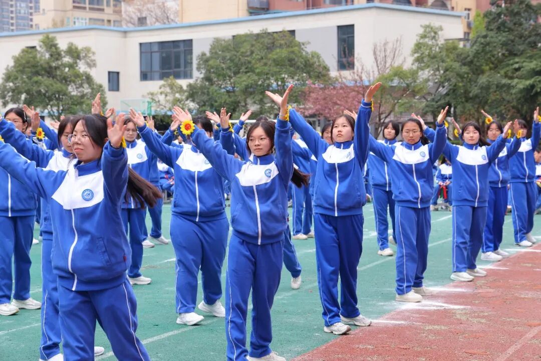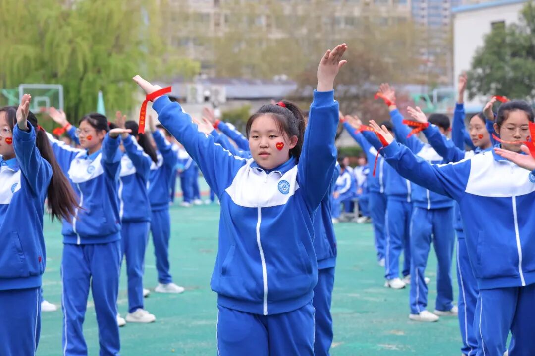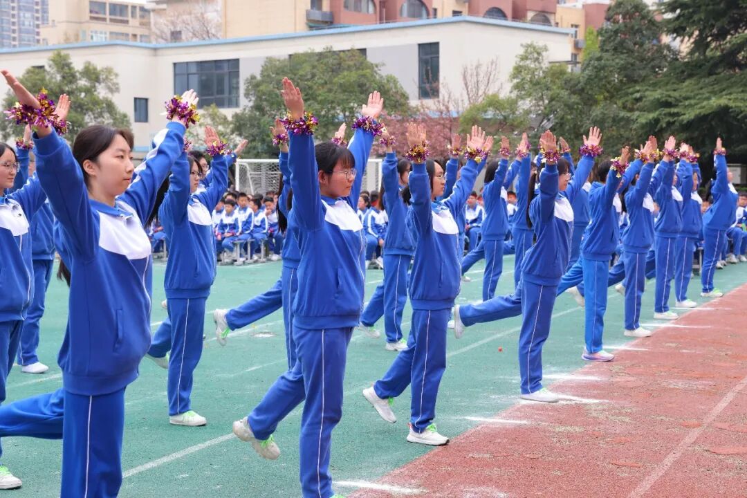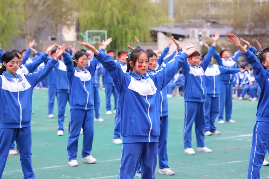 初一、高一年级全体学子以班为阵、以操为语,在阳光赛场之上,用标准的动作、昂扬的姿态,诠释青春的蓬勃力量,演绎集体的同心之美。