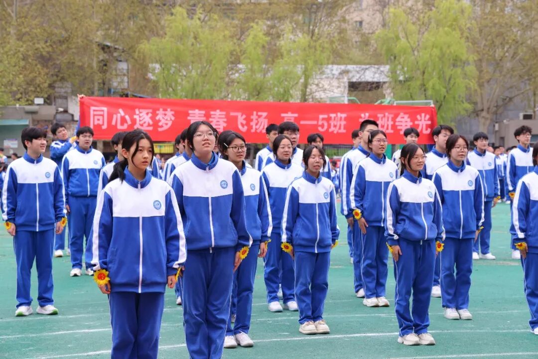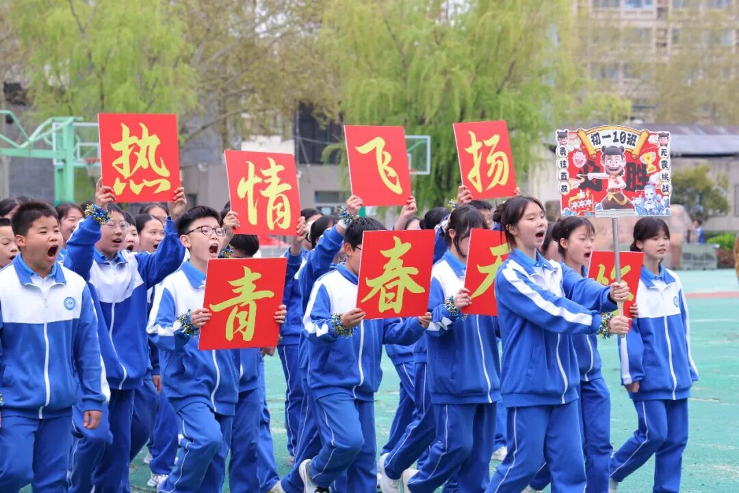 赛场之上,各班依抽签顺序依次登场,每一个班级都亮出独属于自己的青春底色。入场时,学子们身着统一校服,队列方正、步伐坚定,短短十余字的班级口号,或铿锵有力、或朝气蓬勃,喊出了班级的凝聚力与精气神。