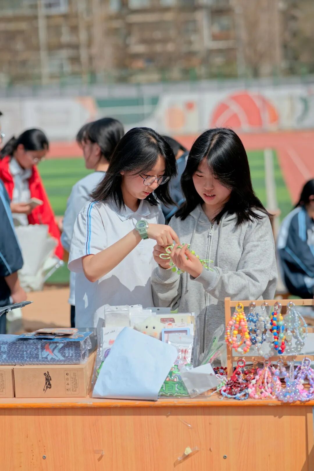 同学们精心准备各类文创与手工作品,手绘书签、定制饰品、创意摆件、手工 DIY 琳琅满目,每一件作品都藏着巧思与心意,成为独一份的青春纪念。