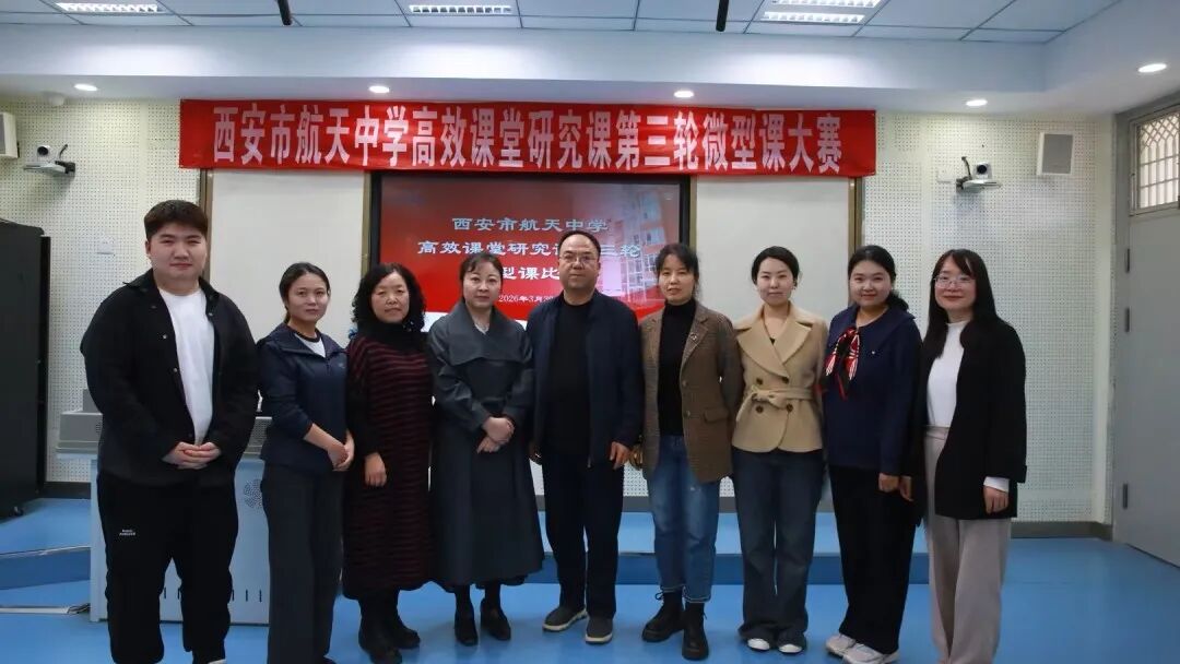 为切实落实“双减”政策,深入贯彻“五育”并举教育理念,进一步锤炼教师教学本领、提升教育教学质量,促进学生全面发展,推动课堂教学方式的创新与深化,2026年3月30日,西安市航天中学“高效课堂”研究课第三轮微型课比赛顺利落幕。此次比赛特邀雁塔进校各学科教研员做评委,各学科教师积极响应、踊跃参与,在三尺讲台上深耕细研、绽放育人芳华。