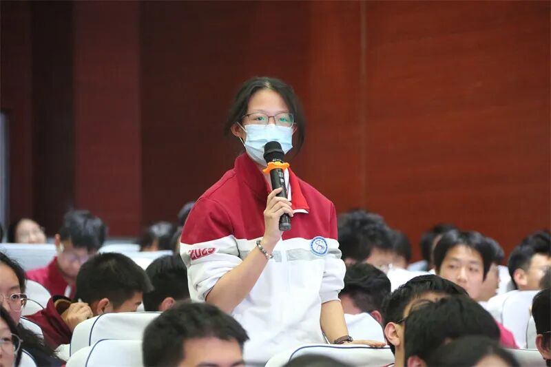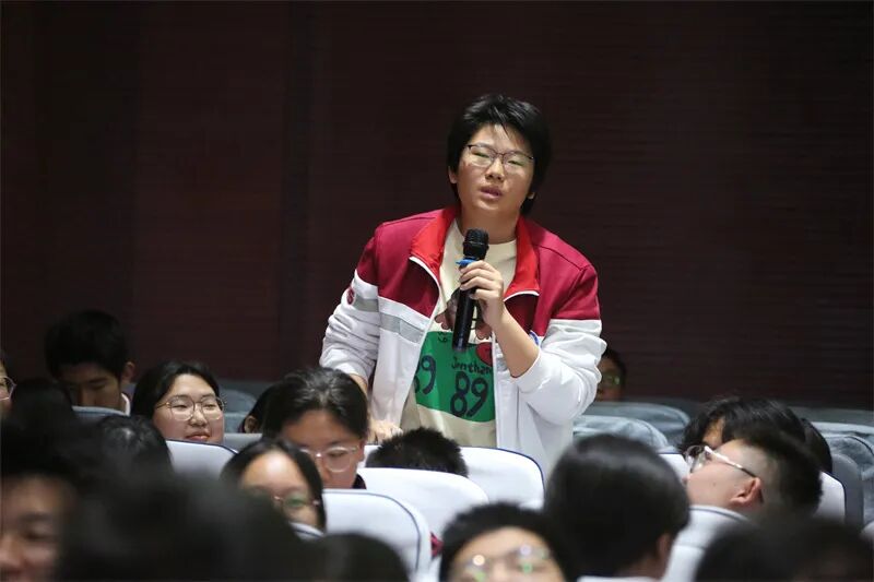 在互动答疑环节,同学们踊跃举手、积极提问。先后有五名同学围绕学习方法、科研兴趣、材料专业前景、青年责任担当等方面与院士深入交流。张荻院士耐心细致、循循善诱,逐一解答困惑,鼓励同学们保持好奇心与求知欲,夯实基础、勇于探索,找到自己的兴趣和爱好,把个人理想融入国家发展,用科学知识服务祖国、造福社会。院士的谆谆教诲,让同学们备受鼓舞、倍感振奋。