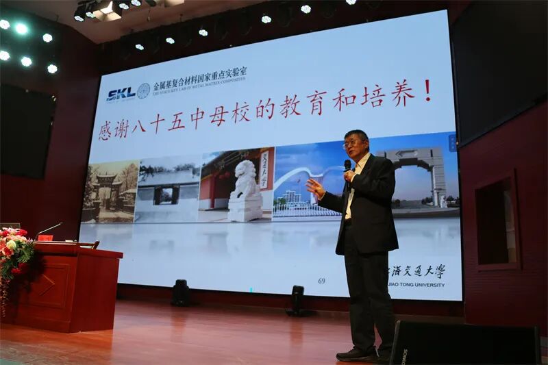 报告会上,张荻院士结合个人成长历程与科研实践,以朴实真挚的语言,回顾了从西安市第八十五中学毕业后,历经上山下乡、工厂务工、恢复高考考入西安交通大学、公派出国深造、归国潜心科研的奋斗之路。他以自身经历勉励同学们:人生没有白走的路,每一段经历都是锻炼能力、开阔视野、扎根向上的基石,唯有坚守初心、脚踏实地,方能在时代浪潮中实现价值。