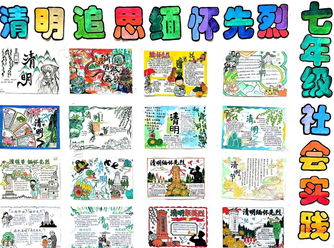 本次清明假期实践作业紧扣“清明寄思、实践育人”核心,结合初中、高中不同学段学生的认知特点与成长需求,设计了丰富多样、贴合实际的实践内容,实现了学段差异化、活动个性化。初中部围绕“文明祭祀、缅怀先烈、绿色清明、感恩成长”四大主题,广泛开展手抄报创作、主题绘画、英烈故事分享等活动,同时积极引导学生倾听家族先辈故事、践行感恩孝亲行动,在动手实践中感悟传统美德,在温情陪伴中传承优良家风。高中部以“祭英烈·强信念·勇担当”为核心,聚焦红色传承,组织学生开展主题征文、线上祭扫心得撰写活动,依托“追寻·2026·清明祭英烈”网络平台,引导学生云端献花、留言寄语,致敬革命先烈,抒发青春担当,将爱国情怀融入字里行间。