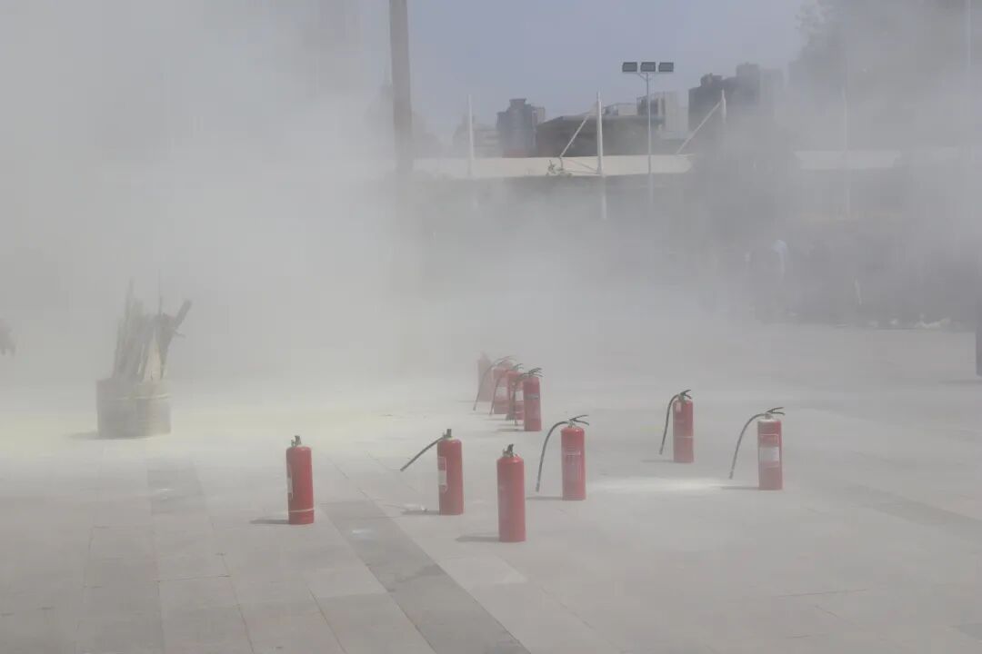 随后,演练进入了消防知识科普与实操教学环节。安保办老师现场详细讲解了火灾的预防、初期火灾的扑救方法以及火场逃生的注意事项。